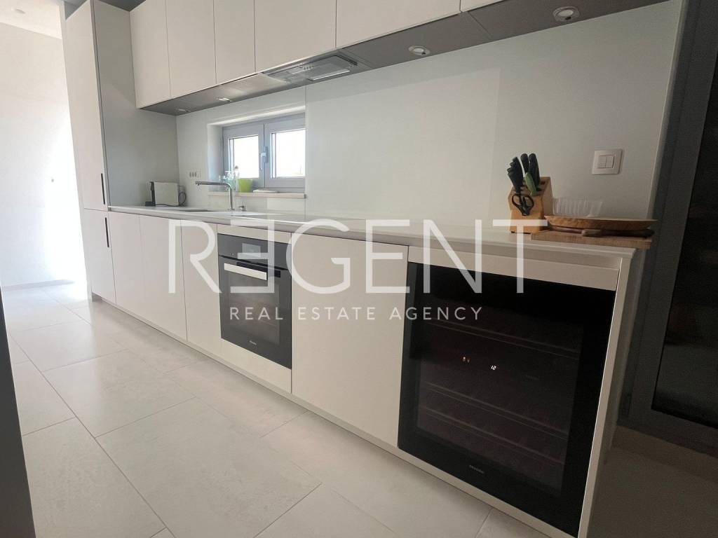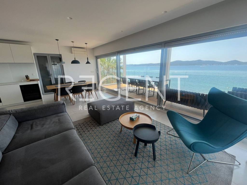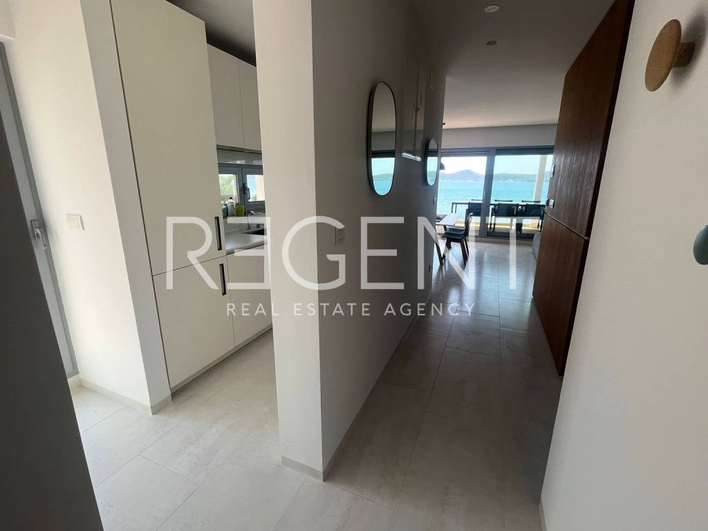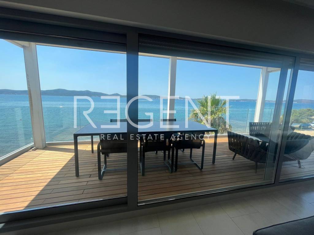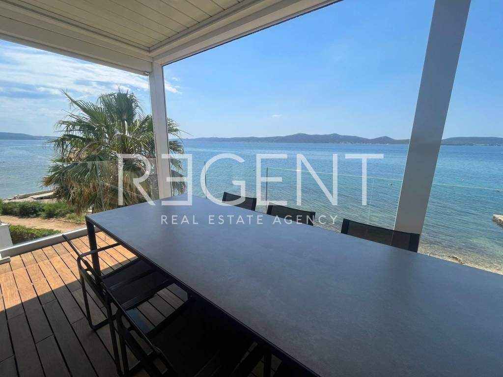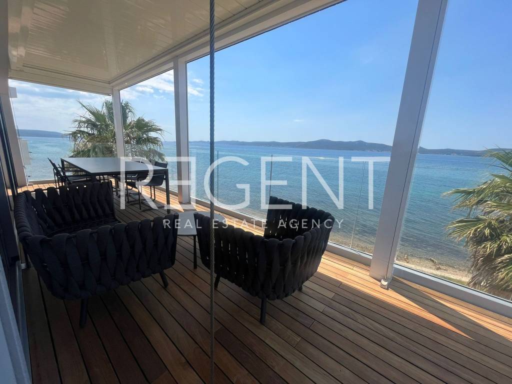 In Sukošan, not far from Zadar, there is a penthouse located in an urban residential building with two floors, in an exceptional location right by the sea. The apartment with a closed area of 85.54 m², with associated terraces, garden, storage room and two parking spaces, occupies a total of 117.75 m² of living space. The layout includes an entrance area, hallway, three bedrooms, two bathrooms, kitchen, living room with dining area, two terraces and additional storage rooms and a garden on the ground floor. The apartment also has two outdoor parking spaces. The covered terrace of the apartment offers a panoramic view of the sea. The property is equipped with quality systems and materials: anti-burglary door aluminum joinery with electric shutters video intercom and alarm system underfloor heating first class ceramics The building is located in a quiet part of Sukošan, within walking distance of the town center and all necessary amenities. Nearby are Zadar, Biograd na Moru and quick connections to the highway. For more information or to arrange a viewing, please feel free to contact us.