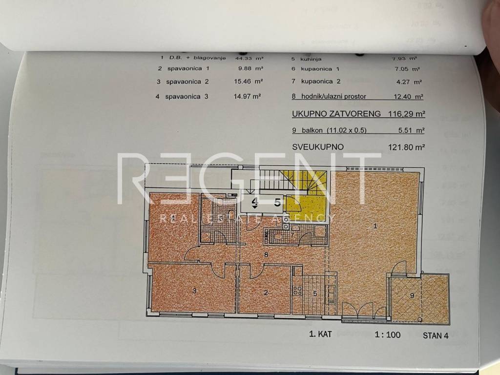 For sale is a spacious, four-room apartment located in a quiet part of the Zagreb settlement of Bijenik, in the Črnomerec city district. The apartment is located on the first floor of a small residential building built in 2004, which has a total of two floors and no elevator. The total area of the apartment is 122 square meters, and it consists of an entrance hall, a living room connected to the kitchen and dining room, three bedrooms, a bathroom with a toilet, an additional separate toilet, and a covered terrace that provides a pleasant space for relaxation. The apartment is oriented to all four sides of the world, which ensures plenty of natural light throughout the day. High ceilings of 2.65 meters further contribute to the feeling of spaciousness. Heating is gas central heating. The apartment also comes with one garage and two outdoor parking spaces, which is an exceptional advantage in this location. The property is sold fully furnished, which allows the new owner a quick and easy move-in without additional investments. Nearby are all the necessary amenities for everyday life – public transport, shops, schools, parks and other infrastructure. An interesting feature of this offer is the possibility of exchanging the apartment for a smaller property or an investment opportunity, which further opens up flexibility to potential buyers. Ideal for a family, but also for those who seek comfort and peace, and yet want to be connected to city life.