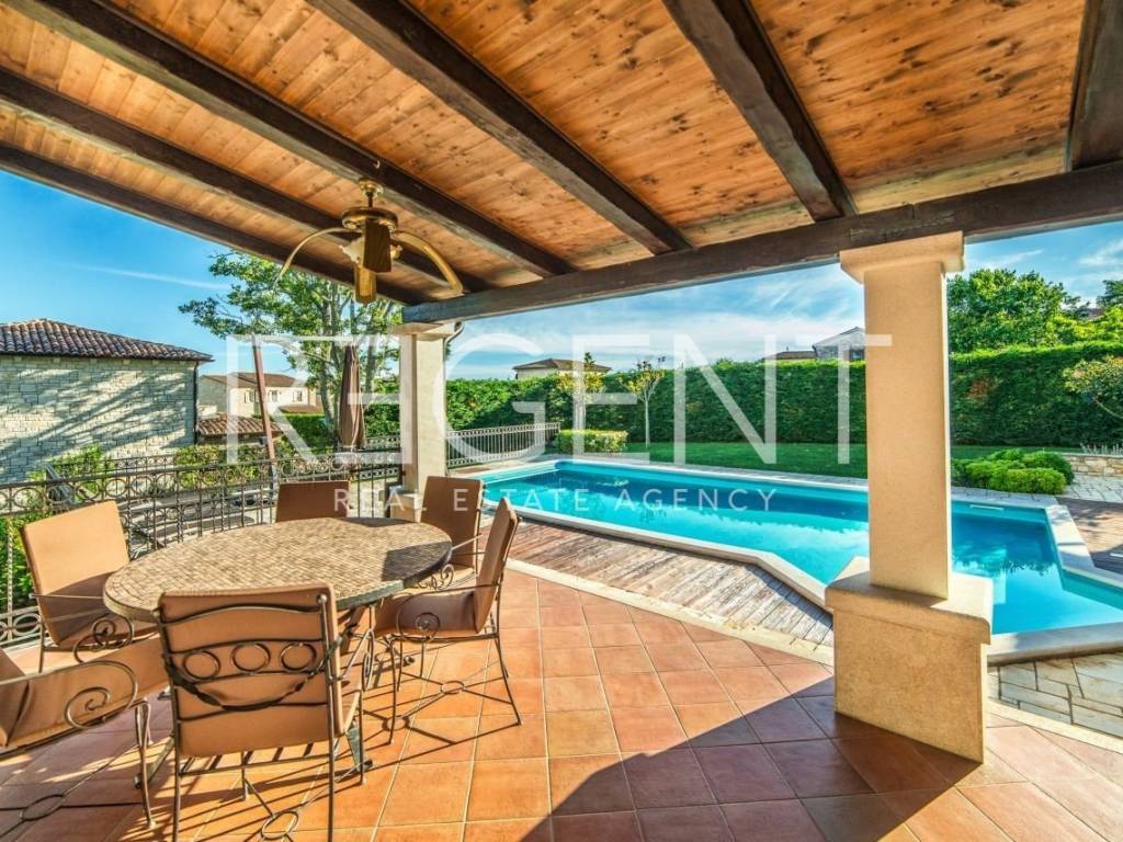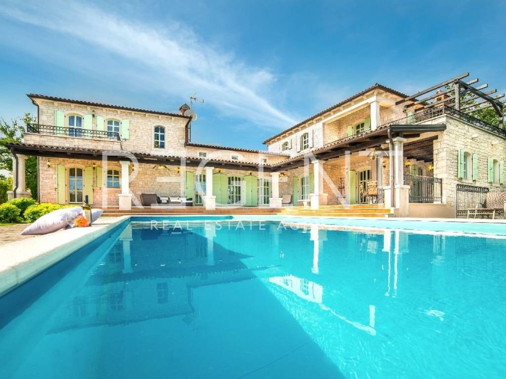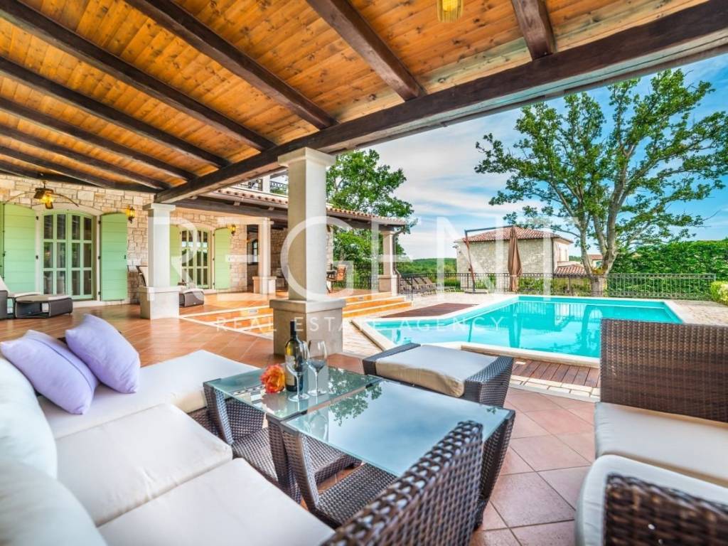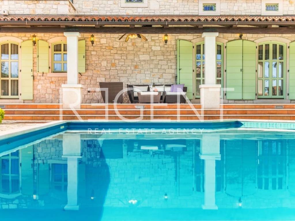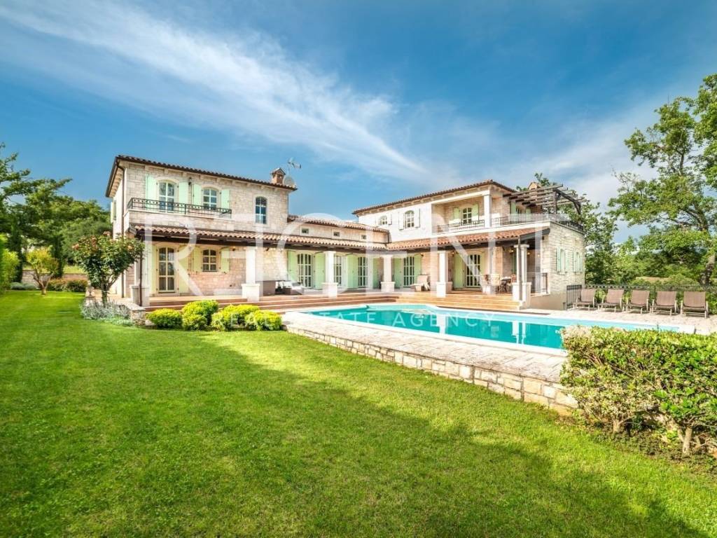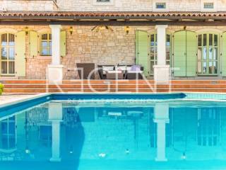 Located in the charming village of Barat, surrounded by the greenery and tranquility of the Istrian landscape, Villa Romana is the perfect blend of elegance, comfort, and peace. This rustic-modernist villa has been carefully designed to provide a vacation experience at the highest level – whether you come with family, friends, or as a couple. The villa is spread over an impressive plot of 1,390 m², with a total living area of as much as 550 m², allowing for spaciousness and complete privacy in every corner. Upon your first step inside, you will be greeted by the splendor of the living area, where a fireplace and large glass walls create a warm and bright atmosphere. The kitchen, fully equipped for preparing all imaginable delicacies, is ideal for relaxed dinners and long gatherings. Each bedroom has its own character and is designed with attention to detail and comfort, offering complete privacy. The villa has five bathrooms, one of which has a bathtub, which further contributes to the feeling of hotel luxury. For complete relaxation, there is a sauna and a private spa area, while the outdoor space is breathtaking – a heated pool surrounded by sun loungers, a covered terrace with a dining area, and a view of the greenery create the perfect backdrop for outdoor living. In the enclosed garden, there is a children's playground, as well as additional facilities such as table tennis and bicycles for exploring the surroundings. Villa Romana is adapted for year-round stays, with modern cooling and heating systems, private parking, and all the necessary amenities for a carefree vacation. Here, every moment becomes a memory – whether you are looking for a luxurious break, an active vacation, or an intimate gathering in the heart of Istria.