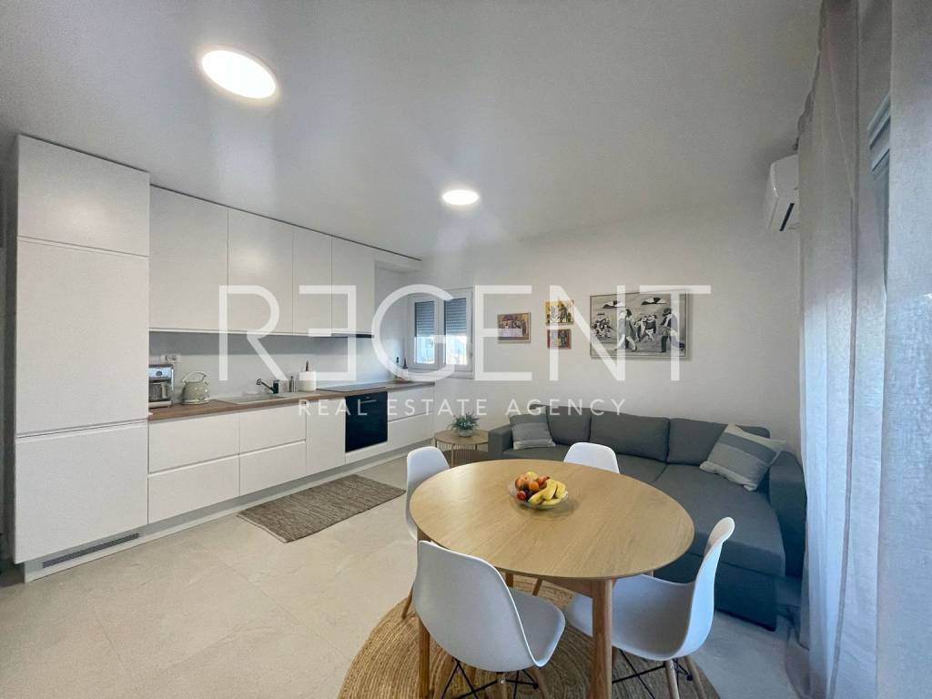 For sale is an apartment located on the ground floor of a small residential building in Kaštel Stari, with a total area of 39.17 m². The interior consists of a living area with a kitchen and dining room, and a bathroom, and thanks to the ground floor level, the apartment has direct access to the garden. The apartment is fully furnished and ready for immediate occupancy. The apartment also comes with spacious outdoor amenities – two gardens with a total area of 42.9 m², perfect for arranging a terrace, socializing with family, or a private relaxation corner. An additional advantage is a private parking space of 14.82 m² which ensures practicality and safety. Living in Kaštela brings a combination of a peaceful Mediterranean environment and excellent connectivity with larger cities. The apartment is located in Kaštel Stari, the oldest of the seven Kaštela, known for its charming stone core, a seaside promenade, and local cafes and restaurants. Nearby are shops, schools, kindergartens, and all the necessary amenities for a pleasant family life. The proximity of Split and Trogir allows quick access to business, cultural, and entertainment facilities, while Split Airport further enhances the value of the location. This property represents an ideal choice for those who want to combine the practicality of an apartment with enjoying private outdoor spaces, but also for those looking for a smart investment in one of the most sought-after areas of central Dalmatia. The apartment is registered as a commercial space in the documents. The ownership is in order and free of encumbrances. For additional information and to arrange a viewing, please feel free to contact us.