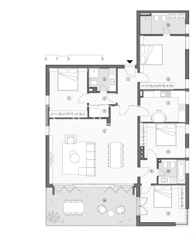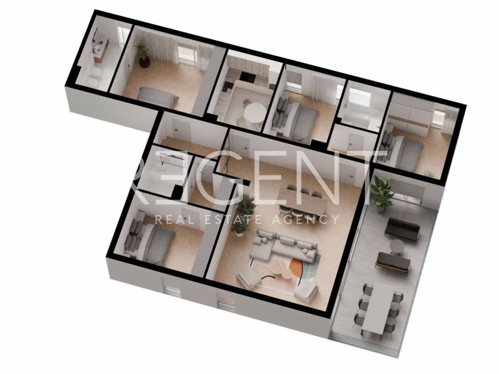 Located in one of the most prestigious locations in Split is the Villa Mareterra project, a modern new building designed for comfortable and safe living. Living in Meje means prestige, privacy and immediate proximity to the sea, Marjan and the city center, and it is this combination of peace and practicality that makes this location perfect for families, couples and individuals who are looking for more than an apartment – they want long-term value and a luxurious lifestyle. The Mate apartment is located on the high ground floor and covers a total of 177.95 m², of which 130.87 m² is the interior, and 47.08 m² is the terrace and associated garden. The layout is designed to provide maximum comfort and functionality – a spacious living room with a dining area and access to the terrace, a modern kitchen with a pantry, three bedrooms and three bathrooms. The private garden and large terrace allow you to enjoy the peaceful surroundings and greenery, which makes the apartment particularly attractive. The quality of construction and equipment is visible in every detail: heat pump with underfloor heating, multi-split air conditioning system with remote control, Schüco aluminum joinery with electric shutters, first-class parquet and ceramics, interior doors with hidden doorframes and sanitary equipment of premium level. The apartment also includes a storage room in the basement, while the garage spaces are equipped with charging connections for electric vehicles. The building is designed as a detached building with two underground garage floors, a ground floor, three floors and a penthouse, and has a total of only eight residential units, which further ensures privacy and peace. Each unit has its own terrace, and the layout of the apartments ensures optimal orientation and plenty of natural light. Completion of works is planned within 30 months from the start of construction, and moving in after obtaining a use permit. The method of payment is provided in phases – 30% upon signing the preliminary contract, 40% after the completion of the construction and 30% after the completion of the facade, with the possibility of an agreement with the buyer. The Mate apartment is an ideal choice for anyone looking for a luxurious and spacious home with a private garden in the heart of Split, in a location that never loses value. For all additional information, as well as an appointment to view the property, feel free to contact us.