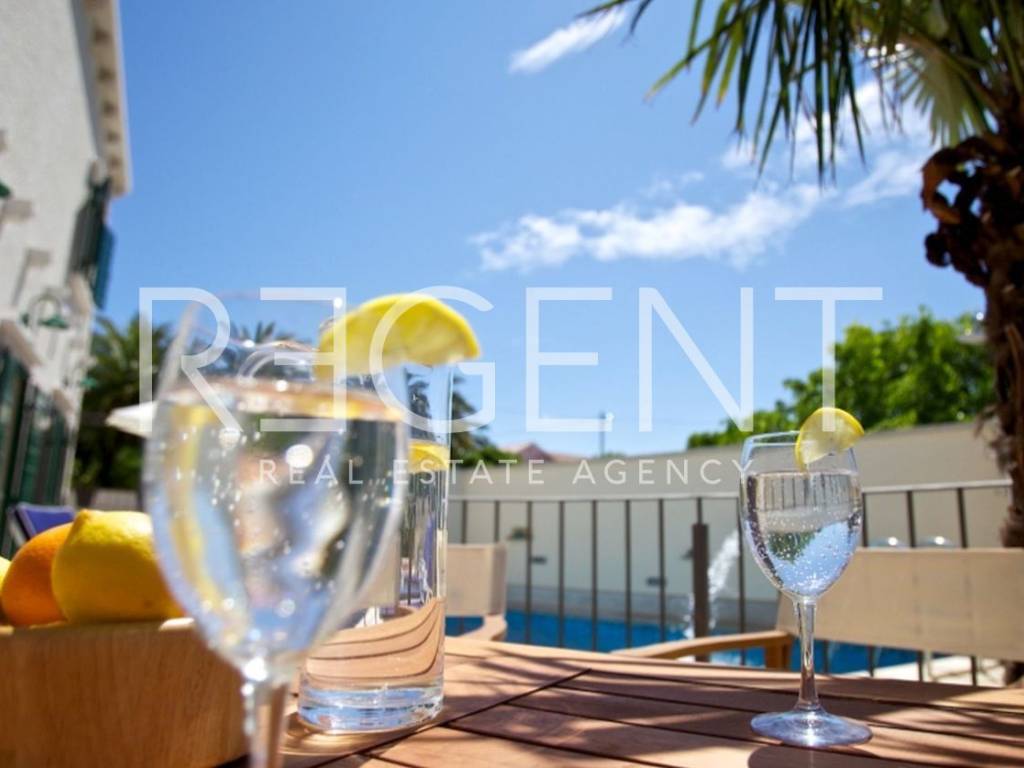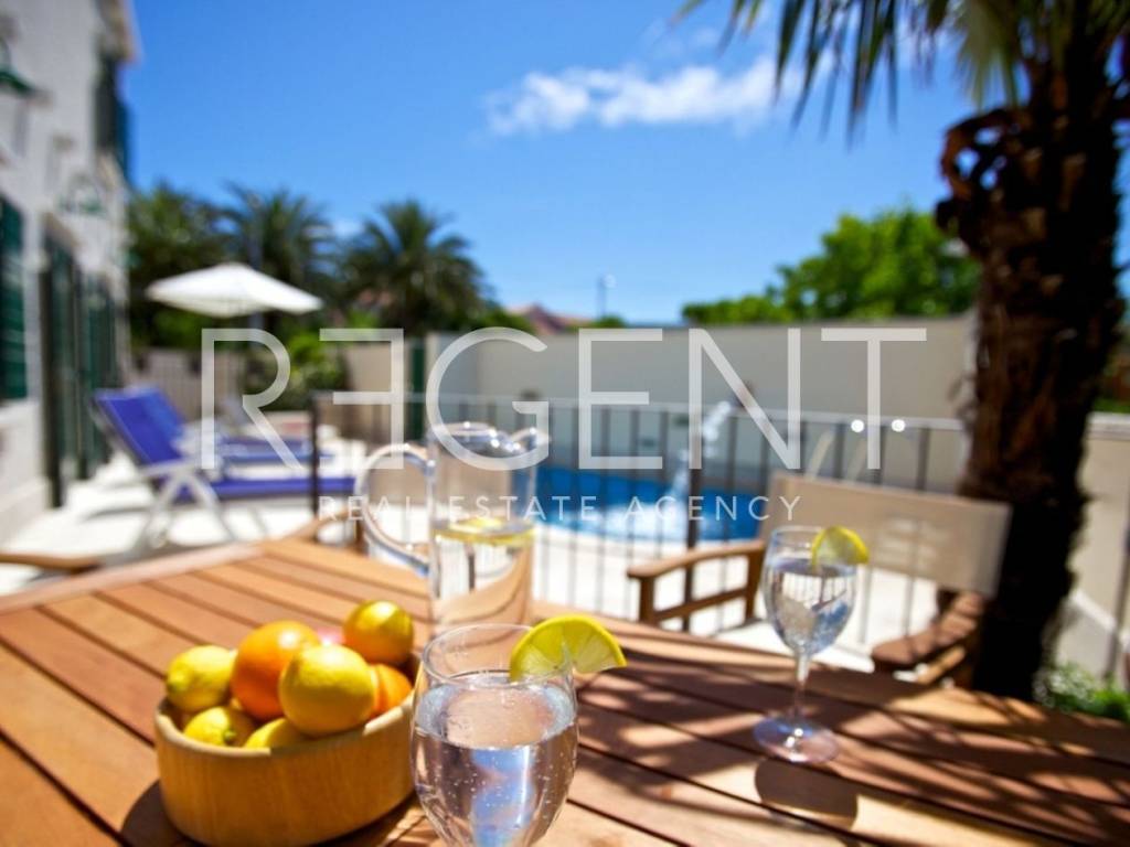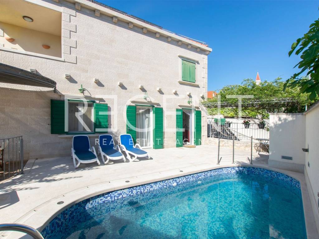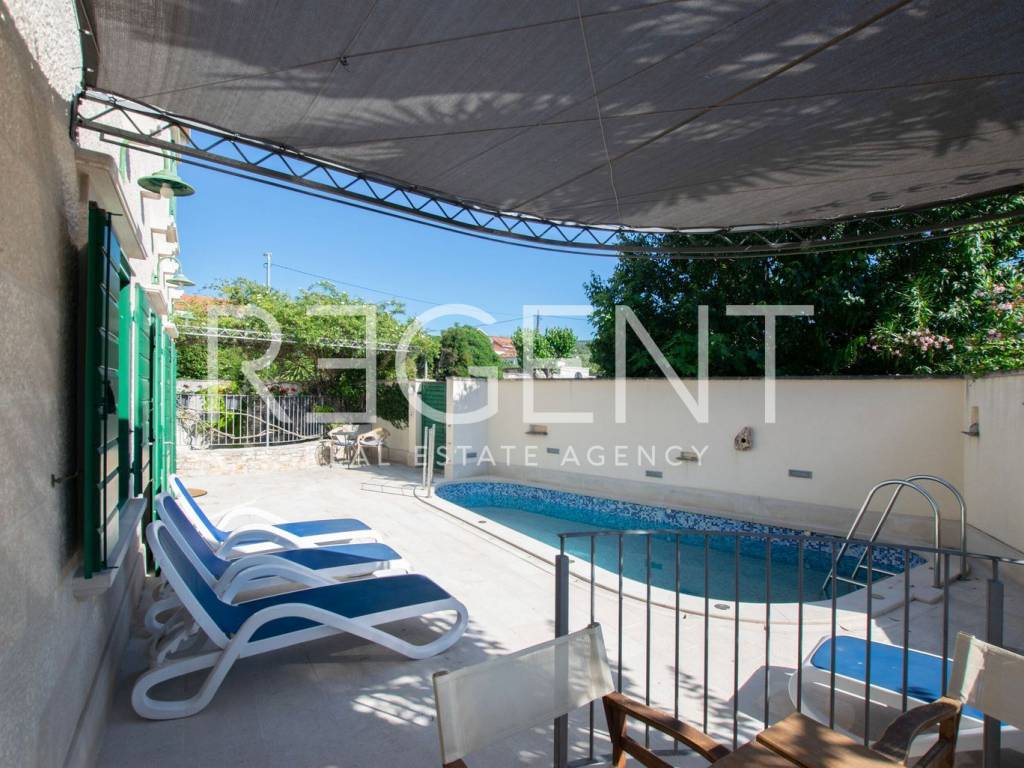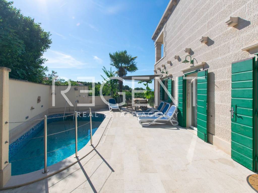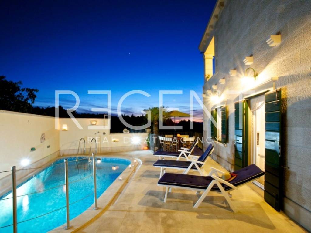 We present a stone villa on the island of Brac in the small town of Mirca, not far from Supetar. The property itself is located in a quiet island environment filled with nature, allowing complete privacy and peace. In addition to its discreet location, the distance to the ferry port is 4 km, and to amenities such as restaurants, shops and bars is less than 500m.The villa consists of a ground floor, first and second floor and attic, facing south, southeast and southwest, providing large amounts of natural light. The ground floor includes two bedrooms, a bathroom, a living room with a fully equipped kitchen and a dining room that opens onto a south-facing terrace, 40m2 in size, which includes a wine and oil cellar. On the first floor there is a modern kitchen with a spacious living room and fireplace, a dining room, a bathroom and a staircase that connects the second floor of the villa where there are two bedrooms, each with its own bathroom. The attic space serves as an office space with an additional toilet. Outside the villa there is a terrace for socializing, a swimming pool, a sunbathing area, a sauna, an engine room and a garden. The entire villa is covered with underfloor heating, providing a pleasant stay in winter.The villa contains all the conditions for a pleasant stay in the Mediterranean area, and can provide future buyers with a warm home, but also an investment in tourism.For more information, contact us!
