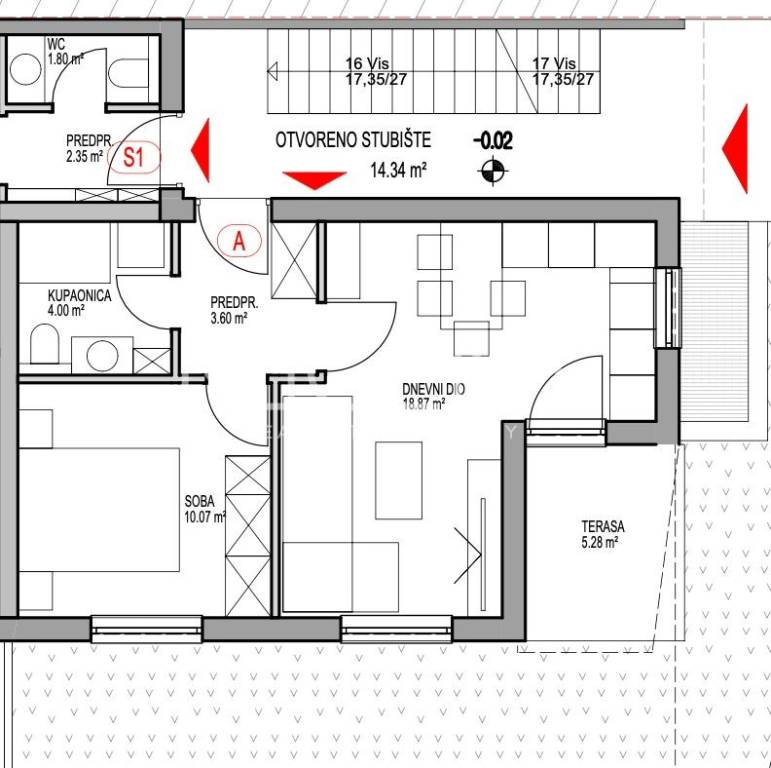 The apartment is located on the ground floor of the Strožanac Residence project, a modern new building in a quiet residential part of Strožanac. The apartment consists of: entrance hall 4.37 m², living area 27.18 m², hallway 3.47 m², bathroom 4.63 m², bedroom 12.52 m² and a loggia of 14.44 m² (calculated 3.61 m²), which totals 55.78 m² of net usable area. The apartment is designed for maximum space utilization, with modern construction standards and quality materials that ensure durability and comfort. The garage parking space costs €25,000. The planned completion of works is scheduled for the end of summer 2027. Strožanac represents an ideal location for a pleasant and quality life, where a peaceful residential environment and proximity to the sea are combined. The area is excellently connected to Split and the main roads, which allows easy access to business and cultural facilities of the city. At the same time, schools, shops and recreational areas are in the immediate vicinity, which provides all the prerequisites for a functional and modern life. For more information, as well as an appointment for a viewing, feel free to contact us!