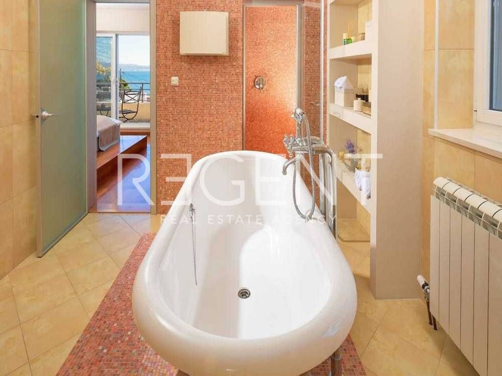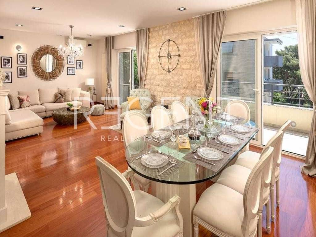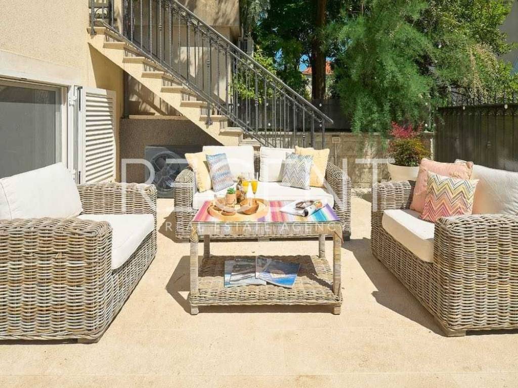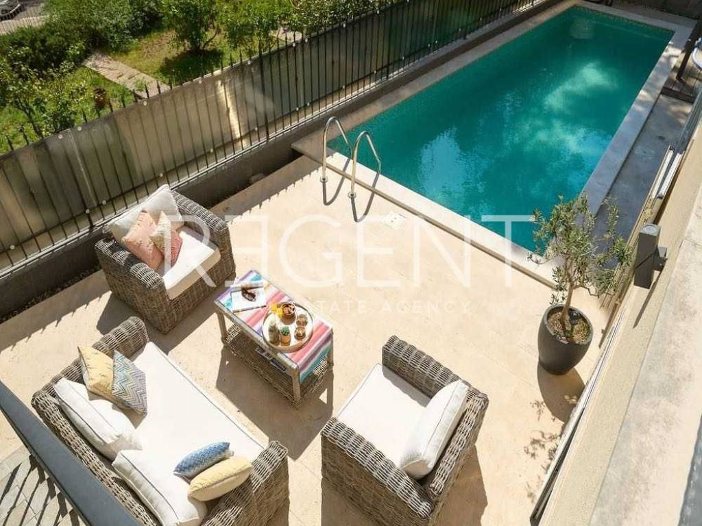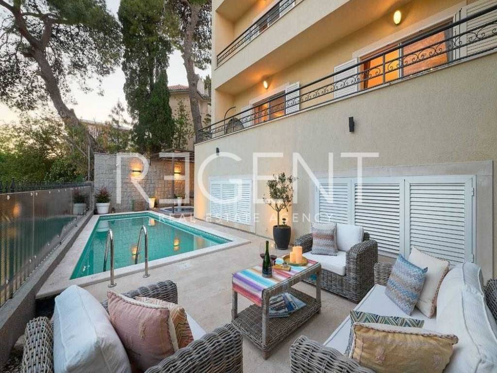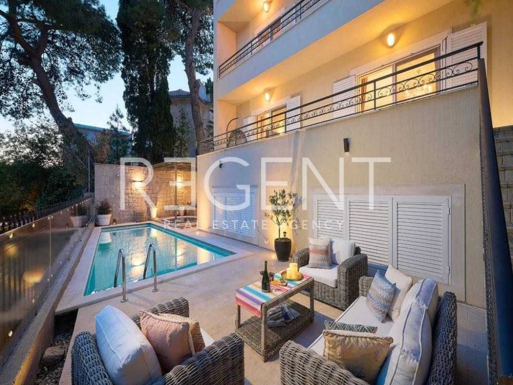 This exceptional property is located in the immediate vicinity of the city center and the iconic sandy beach of Bačvice. The size of the villa is 480 square meters of gross living space and is located on a plot of 335 square meters. It is built on four floors. The basement consists of a room for celebrations, a small kitchen, a study and a bathroom. The ground floor has a spacious living room, kitchen, dining room, pantry and toilet. There are two exits to the terraces through which the ground floor of the house is connected to a nicely organized and maintained garden that includes a swimming pool, jacuzzi and sunbathing area on the south side, and a summer dining room located on the terrace on the east side. On the first floor there are three bedrooms with en-suite bathrooms and exits to the terraces, and a room used for laundry care, while the second floor of the house occupies the main bedroom, which includes a separate work area, a bathroom with a sauna, a large wardrobe, and a spacious terrace with a beautiful sea view. The villa also contains a private garage. Due to its exceptional location, this property is an excellent investment for tourism due to its proximity to the most attractive facilities offered by the city of Split. For all other information, feel free to contact us!