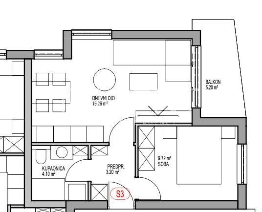 The apartment is located on the ground floor of the Strožanac Residence project, a modern new building in a quiet residential part of Strožanac. The apartment consists of: entrance hall 4.37 m², living area 27.18 m², hallway 3.47 m², bathroom 4.63 m², bedroom 12.52 m² and a loggia of 14.44 m² (calculated 3.61 m²), which totals 55.78 m² of net usable area. The apartment is designed for maximum space utilization, with modern construction standards and quality materials that ensure durability and comfort. The garage parking space costs €25,000. The planned completion of works is scheduled for the end of summer 2027. Strožanac represents an ideal location for a pleasant and quality life, where a peaceful residential environment and proximity to the sea are combined. The area is excellently connected to Split and the main roads, which allows easy access to business and cultural facilities of the city. At the same time, schools, shops and recreational areas are in the immediate vicinity, which provides all the prerequisites for a functional and modern life. For more information, as well as an appointment for a viewing, feel free to contact us!