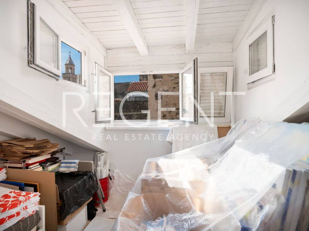 An attractive stone house is for sale in the heart of Split, located in the very heart of Split, within the historic walls of Diocletian's Palace. This unique location allows you to be in the immediate vicinity of the Split waterfront and all the amenities that the city center offers. It is a terraced house, spread over three floors (first and second floor and attic), connected by an internal staircase of open concept. The total net usable area of the property is 75 m². The first and second floors function as a gallery, exhibition space. In the attic there is an office and a small storage room and a bathroom. On the top floor, in the attic, there is a toilet. Each floor has windows on the southern facade, which provides natural light to the space, while the northern wall of the house is the original and visible wall of Diocletian's Palace, which adds special historical value and allows you to live within history. Large windows provide plenty of natural light throughout the day, as well as a picturesque view of the streets of Diocletian's Palace and the bell tower of the oldest cathedral in the world, the Cathedral of Saint Domnius. The property has been completely renovated, and no additional investments are needed. It is currently used as a gallery, but due to its exceptional location it offers a wide range of possibilities for various business activities. For additional information feel free to contact us!