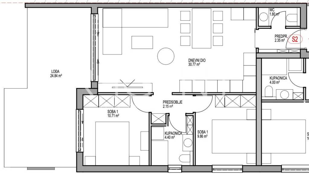 The apartment is located on the ground floor of the Strožanac Residence project, a modern new building in a quiet residential part of Strožanac. The apartment consists of: entrance hall 4.37 m², living area 27.18 m², hallway 3.47 m², bathroom 4.63 m², bedroom 12.52 m² and a loggia of 14.44 m² (calculated 3.61 m²), which totals 55.78 m² of net usable area. The apartment is designed for maximum space utilization, with modern construction standards and quality materials that ensure durability and comfort. The garage parking space costs €25,000. The planned completion of works is scheduled for the end of summer 2027. Strožanac represents an ideal location for a pleasant and quality life, where a peaceful residential environment and proximity to the sea are combined. The area is excellently connected to Split and the main roads, which allows easy access to business and cultural facilities of the city. At the same time, schools, shops and recreational areas are in the immediate vicinity, which provides all the prerequisites for a functional and modern life. For more information, as well as an appointment for a viewing, feel free to contact us!