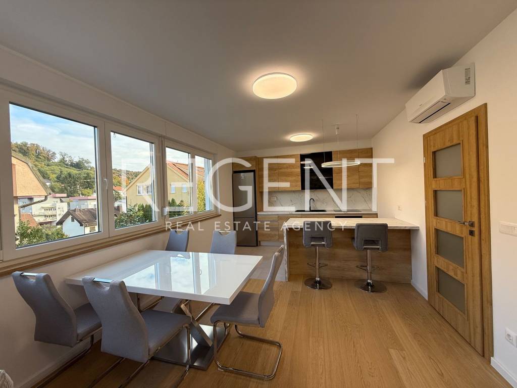 The apartment is located on the ground floor of a modern building in Gračani, in a peaceful and green environment ideal for families or couples seeking a long-term and well-equipped home. The apartment has a closed area of 63.60 m², an uncovered terrace of 8.8 m², and a garden of 20 m². The total actual area is 124.9 m², and the net usable area (NUA) is 79.86 m². It consists of a living room with a kitchen, two bedrooms, two bathrooms, and a hallway. The apartment is fully furnished, and before moving in, the living room and bedrooms will be additionally equipped according to the needs of the tenant. It is equipped with underfloor heating and hot water on a heat pump, as well as Daikin air conditioners. Thanks to modern technologies, the apartment has high energy efficiency (nZEB certificate) and low utility costs. The rental price includes a garage parking space of 20 m² with a connection for charging an electric vehicle and one outdoor parking space of 12.5 m². The monthly rent is 1,250 euros + utilities. Upon signing the contract, a security deposit equal to two months' rent and a blank promissory note for the amount of 4,000 euros are paid. For additional information, feel free to contact us.