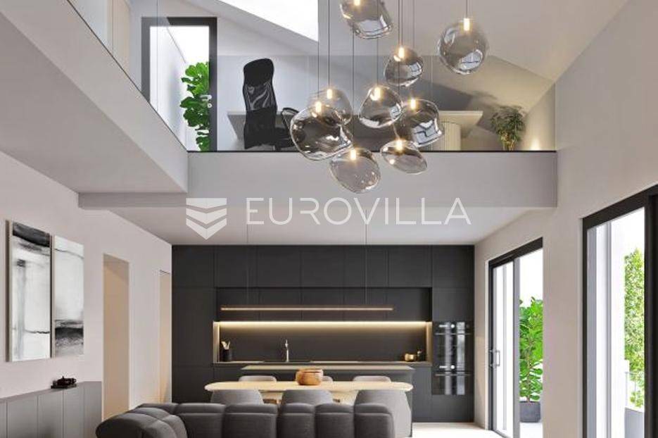 Prostrani dvoetažni stan smješten u samom centru Trsata, ukupne stambene površine 126,3 m², s dodatnih 28 m² terasa i balkona. Stan se nalazi u stambenoj kući, što osigurava mir, privatnost i osjećaj doma, a istovremeno ste na izvrsnoj lokaciji - u blizini svih važnih sadržaja.Stan se prostire na dvije etaže i sastoji se od tri spavaće sobe, otvorenog dnevnog prostora koji uključuje kuhinju, blagovaonicu i dnevni boravak, dvije kupaonice, dodatnog odvojenog toaleta, garderobe, praonice, spremišta te galerije. Iz dnevnog boravka izlazi se na prostranu terasu površine 14 m², dok se s galerije izlazi na krovnu terasu površine 10 m², potpuno zaštićenu od pogleda - idealnu za opuštanje.Stanu pripadaju tri parkirna mjesta, a opremljen je suvremenim sustavima grijanja i hlađenja - uključujući podno grijanje i dizalicu topline - što jamči visoku energetsku učinkovitost i udobnost kroz cijelu godinu. Ugrađena je vrhunska ALU stolarija te su korišteni visokokvalitetni materijali i sanitarije.Stan je idealan za obiteljski život, ali i kao investicija za najam, zahvaljujući kvaliteti izvedbe i atraktivnoj lokaciji.Za detaljnije informacije slobodno nas kontaktirajte.