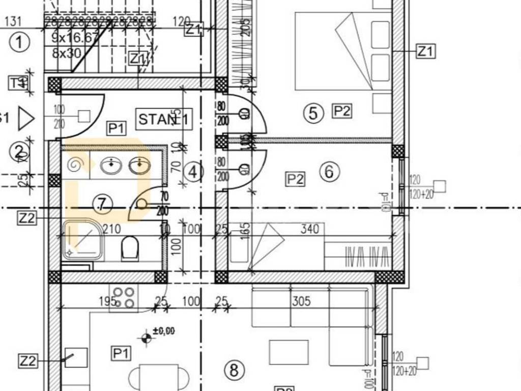 The apartment is functionally organized and consists of an entrance hall, two bedrooms, a bathroom, and a spacious kitchen with dining area and living room which form a unity.