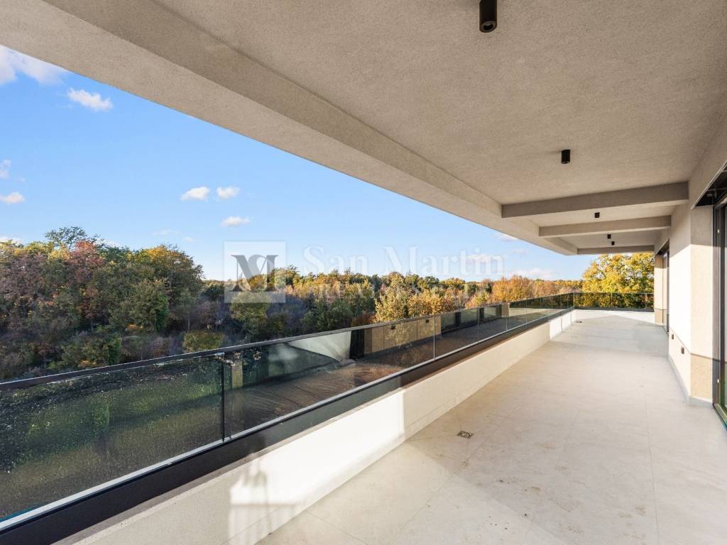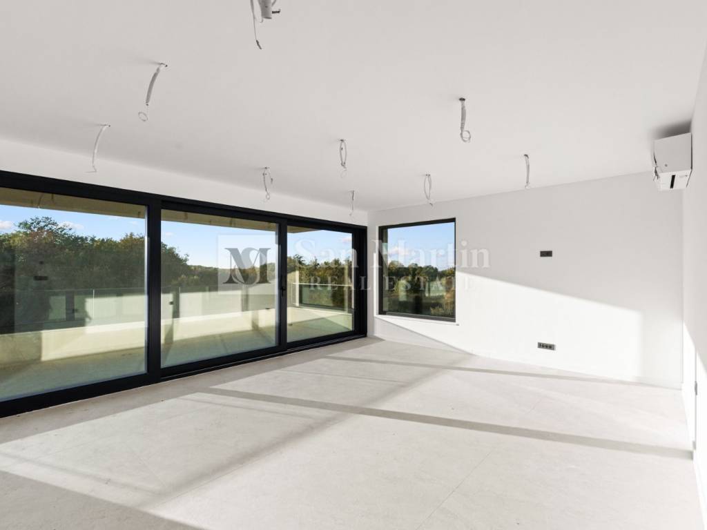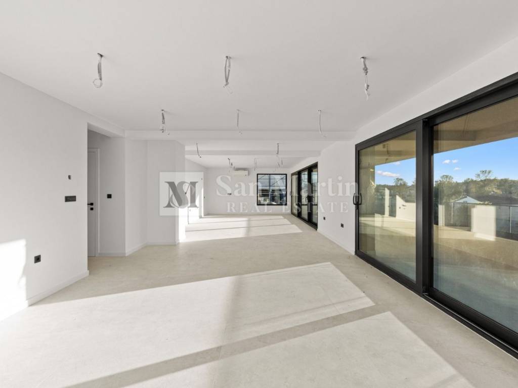 In a quiet location, just 3 km from the center of Poreč, a top-quality equipped apartment of 190 m is for sale, located on the second floor of a modern building. It consists of 4 bedrooms, 2 bathrooms, a guest toilet, laundry room, wardrobe, technical room, and a spacious 70 m open-plan living area with kitchen, dining room, and lounge.