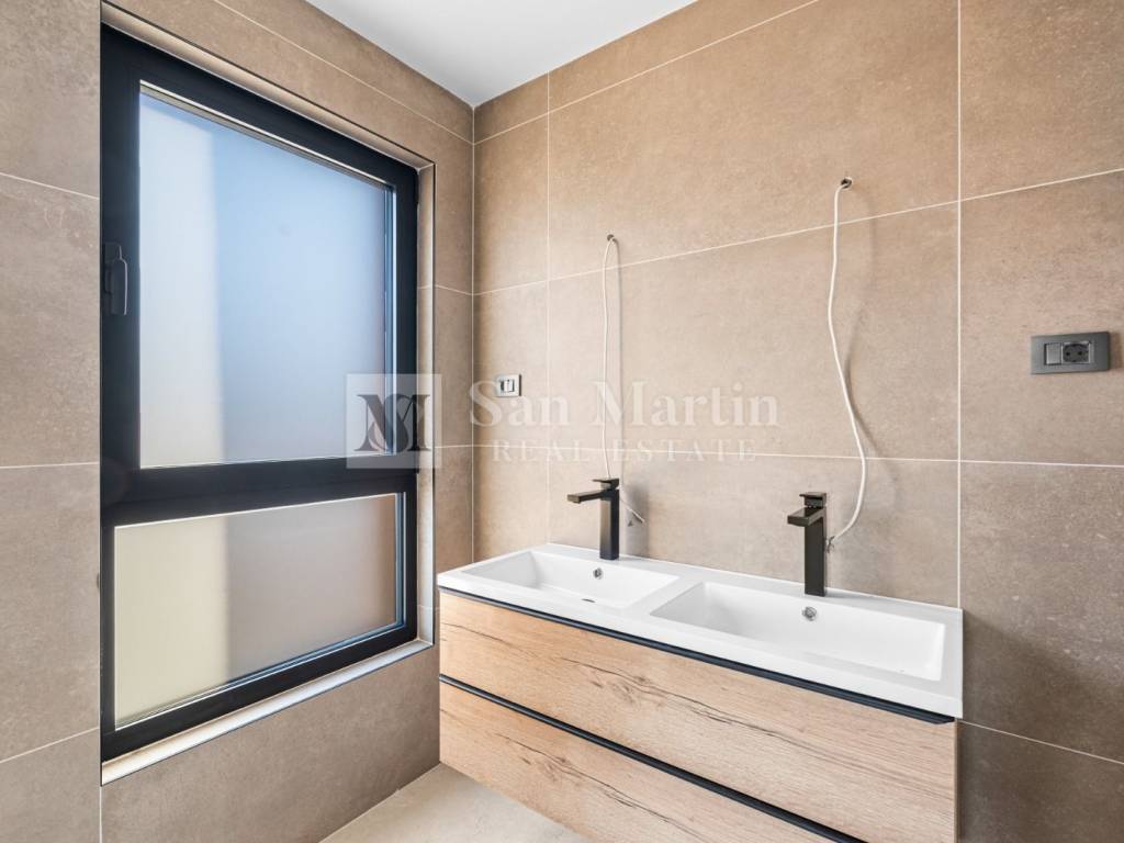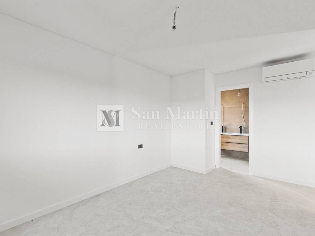Top-class equipment: underfloor heating via heat pump, air conditioning in all rooms, aluminum joinery with triple glazing, shutters, and mosquito nets. Two parking spaces included.
