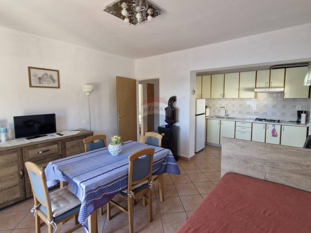 RE/MAX Real Estate Center is offering a two-bedroom apartment located just a 2-minute walk or 50 meters from the beach. Situated on the first floor of a small house, the apartment features an entrance hall, kitchen with dining area and living room, two bedrooms, bathroom, and a spacious terrace with an open view of the sea. Recently fully renovated, the apartment also has a new roof installed in 2022. Its functional layout makes it a perfect place to live comfortably throughout the year.