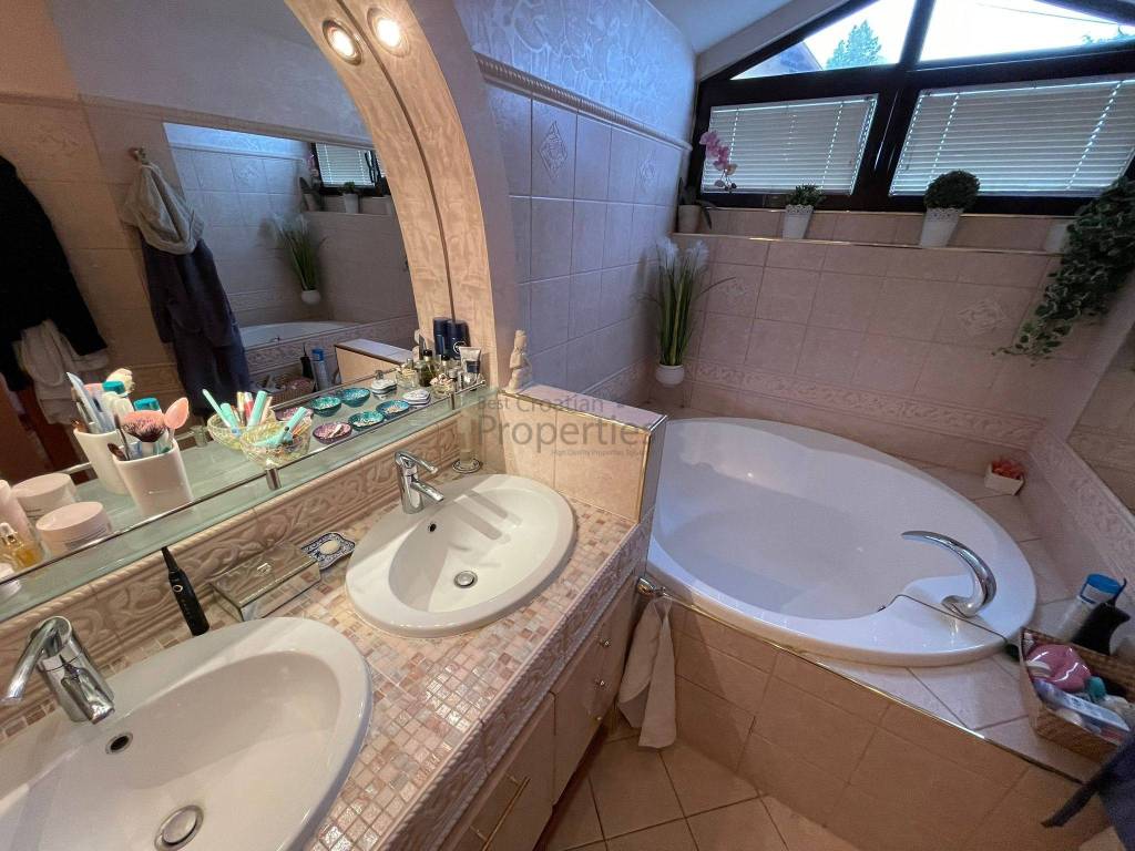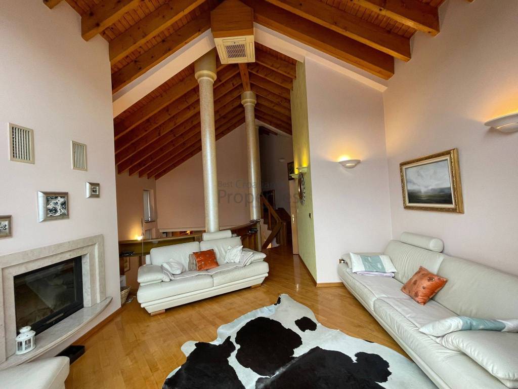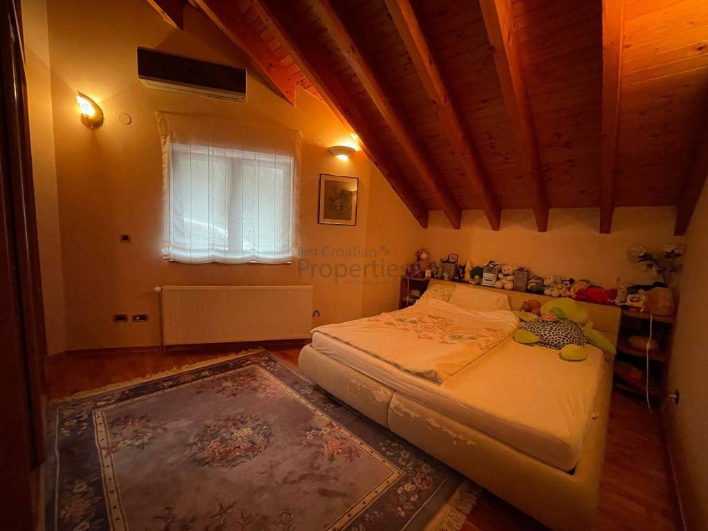 Tel.: 095/564-7500 (Tomislav) agent5@bestcroatianproperties.com Prodaje se prekrasna moderna kuča s 681m2 okućnice na atraktivnoj lokaciji u Gračanima u neposrednoj blizini žičare. Kuća je sagrađena 2004. godine i u vrhunskom je stanju. Kuća je koncipirana na tri etaže povezane centralnim stubištem, s ukupnom neto stambenom površinom od 334m2 te s pripadajućim dvorištem, predivnim vrtom, terasom te dva parkirna mjesta i jednim garažnim. Sastoji se odpodruma, visokog prizemlja i prvog kata. PODRUM: spremišta i vešeraj VISOKO PRIZEMLJE: dnevni boravak, velika terasa, blagavaonica, kuhinja, gostinjski wc, smočnica te sauna i teretana. PRVI KAT: trispavaće sobe (master soba sa kupaonicom i walk-in ormarom), dnevni boravak i dodatna kupaonica te mali balkon. Stolarija je PVC i kuća ima nekoliko klima. Podno grijanje u cijeloj kući. Idealna nekretnina za obitelj ili zaposlene osobe koja želi uživati u miru i privatnosti. AGENCIJSKA PROVIZIJA SE NE PLAĆA.