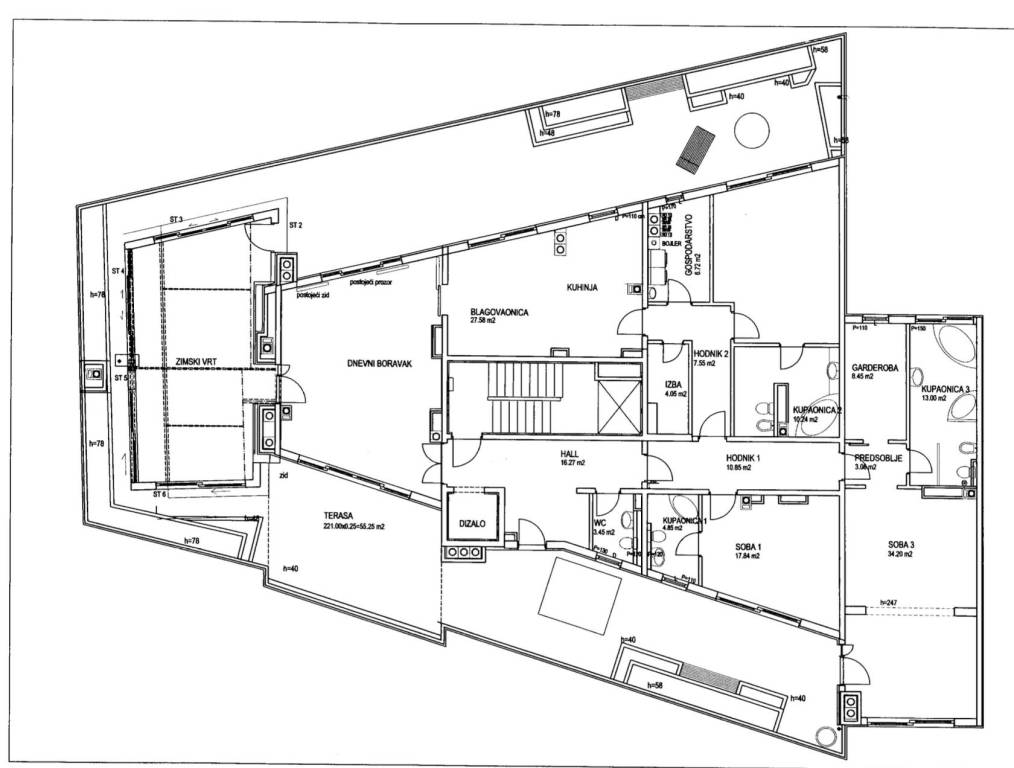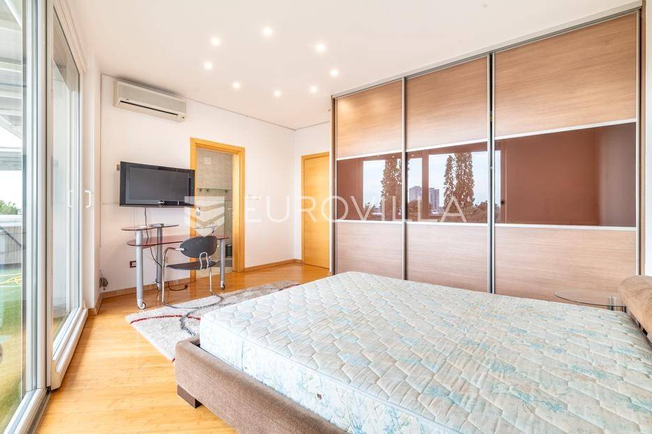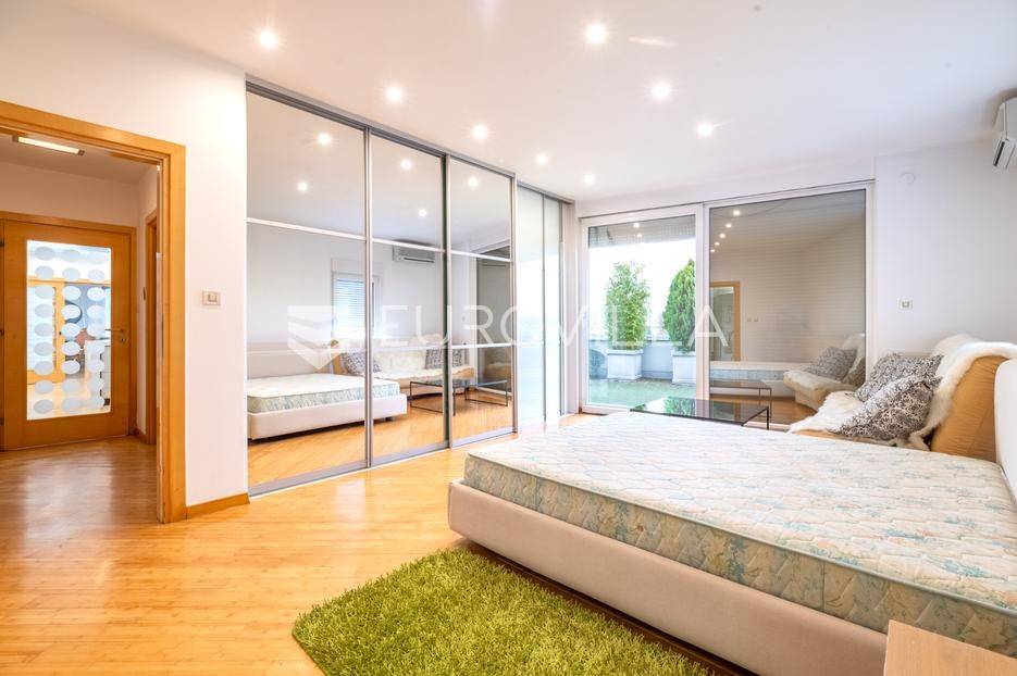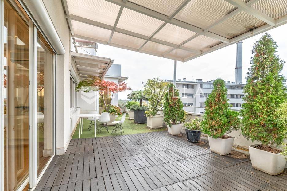 Ovaj luksuzni penthouse u Trakošćanskoj ulici predstavlja jedinstvenu nekretninu na tržištu, smještenu na šestom katu kvalitetno građene i uredno održavane zgrade iz 2006. godine, s liftom koji vodi izravno u stan te omogućuje i direktan pristup iz garaže. Prostire se na 304 m² stambene površine, uz dodatnih 130 m² prekrasno uređenih terasa koje nude obilje privatnosti, zelenila i prostora za opuštanje, uključujući roštilj i jacuzzi. Ukupna neto korisna površina stana 356 m2.Klimatiziran je u svim glavnim prostorijama, dok kupaonice imaju podno grijanje koje pruža dodatnu razinu komfora.Ulazak u stan odmah otkriva osjećaj prostranosti i elegancije - veliki dnevni boravak povezan je s blagovaonicom i modernom, potpuno opremljenom kuhinjom, stvarajući skladan prostor za svakodnevni život i druženja. Master spavaća soba raspolaže vlastitom kupaonicom i garderobom, dok su preostale dvije spavaće sobe također opremljene vlastitim kupaonicama, što ovaj penthouse čini iznimno funkcionalnim i praktičnim za obitelj ili goste. Zatvoreni i legalizirani dio terase pretvoren je u dodatni dnevni boravak površine 44 m², pružajući još jedan miran kutak za rad, opuštanje ili zabavu.Stan dodatno uključuje vešeraj, spremište i gostinjski WC, a posebno vrijedi istaknuti i garažni prostor od 40 m², namijenjen za dva automobila. Sve ovo smješteno je u mirnoj ulici s odličnom mikrolokacijom koja osigurava neposrednu blizinu svih važnih sadržaja. Riječ je o doista rijetkoj prilici - prostranom, luksuznom i pažljivo održavanom domu koji spaja udobnost, estetiku i privatnost na jednoj od najpoželjnijih lokacija na Trešnjevci.Za sva ostala pitanja stojimo na raspolaganju.