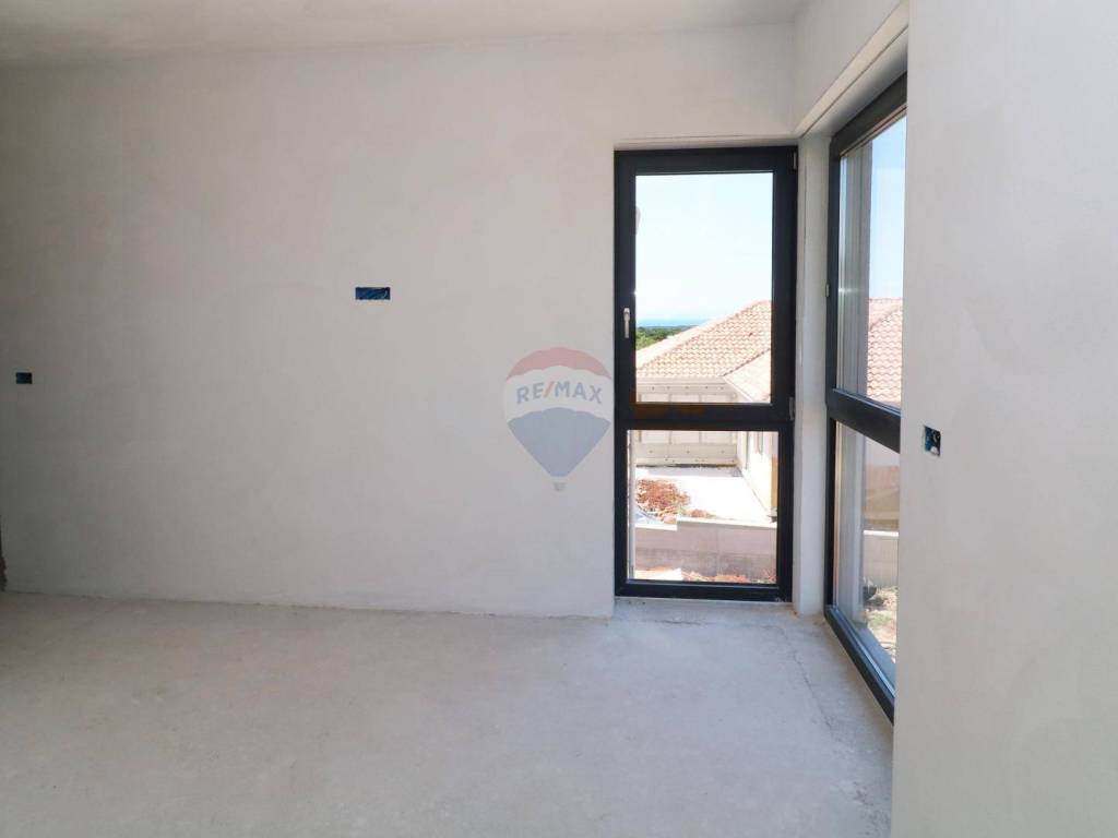 Newly built house for sale, located near Kaštelir. The house has a total area of ​​150 m2 and consists of a living room with a kitchen and a dining room on the ground floor. There is also an entrance hall, a toilet and a technical room. From the living room you can access a spacious covered terrace with a view of the sea, swimming pool and sunbathing area. On the upper floor there are three bedrooms, each with its own bathroom, and a terrace of 18.50 m2 with a beautiful view.