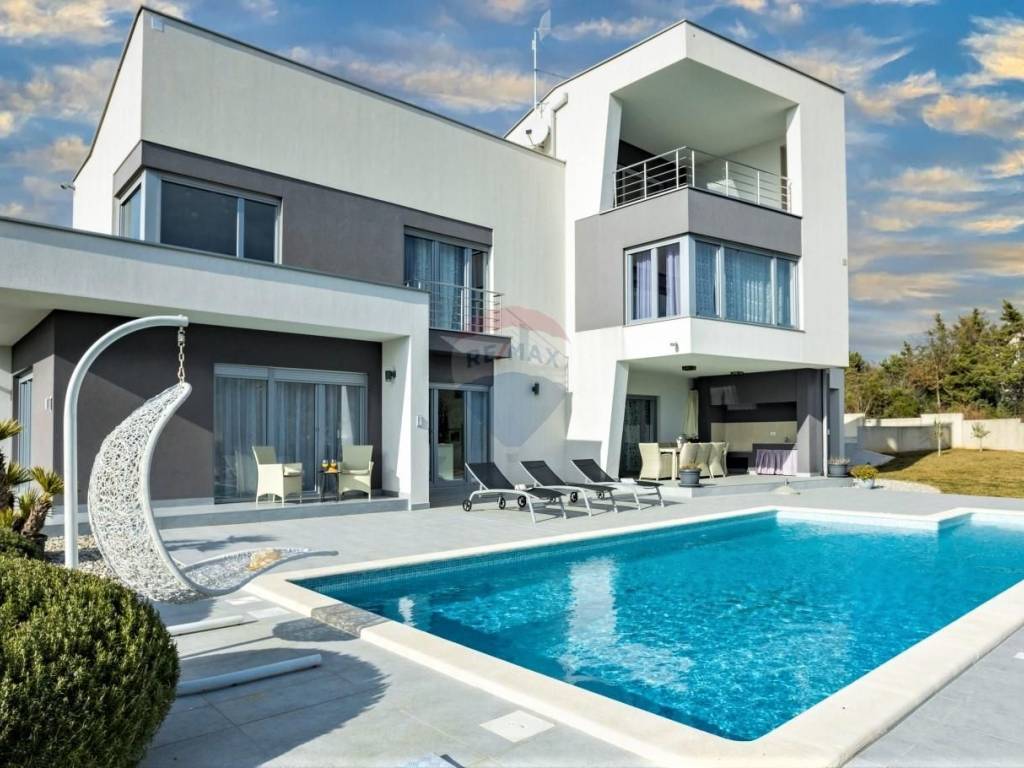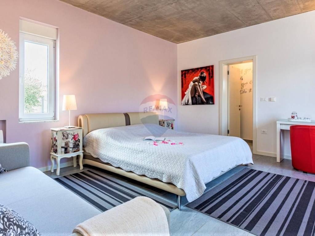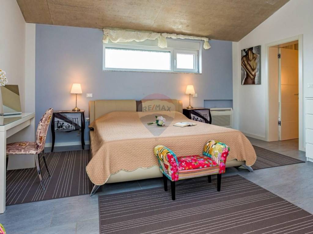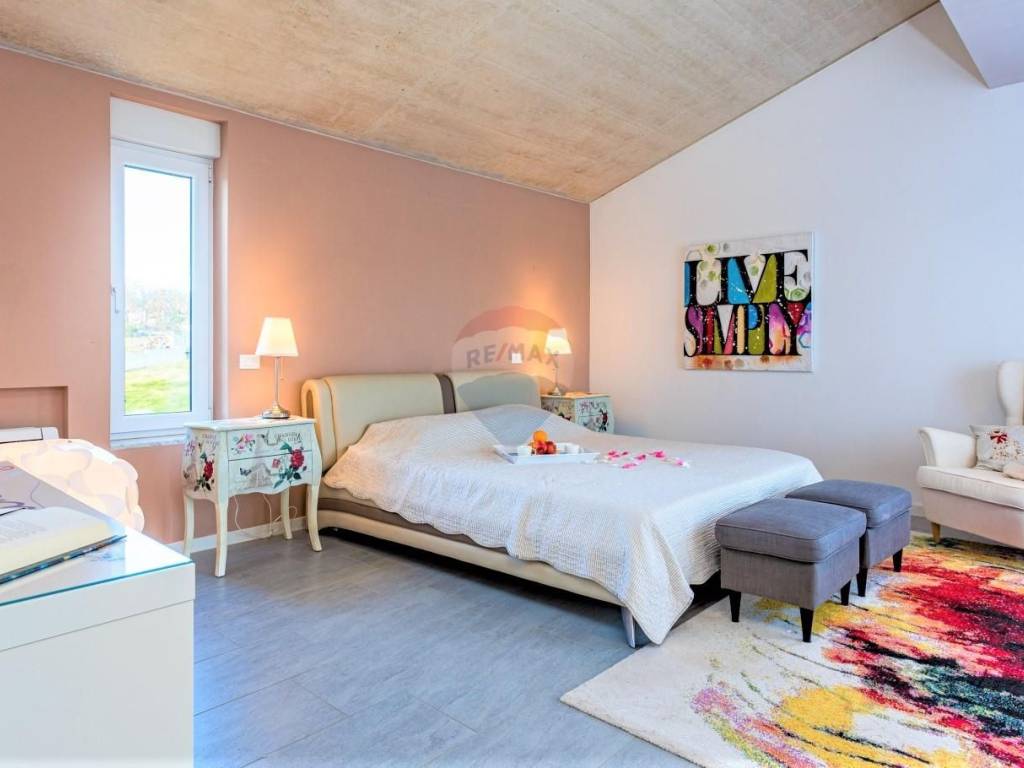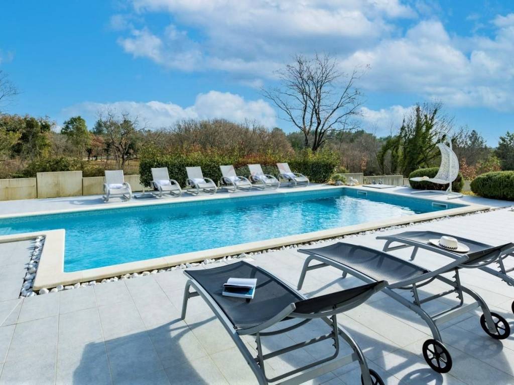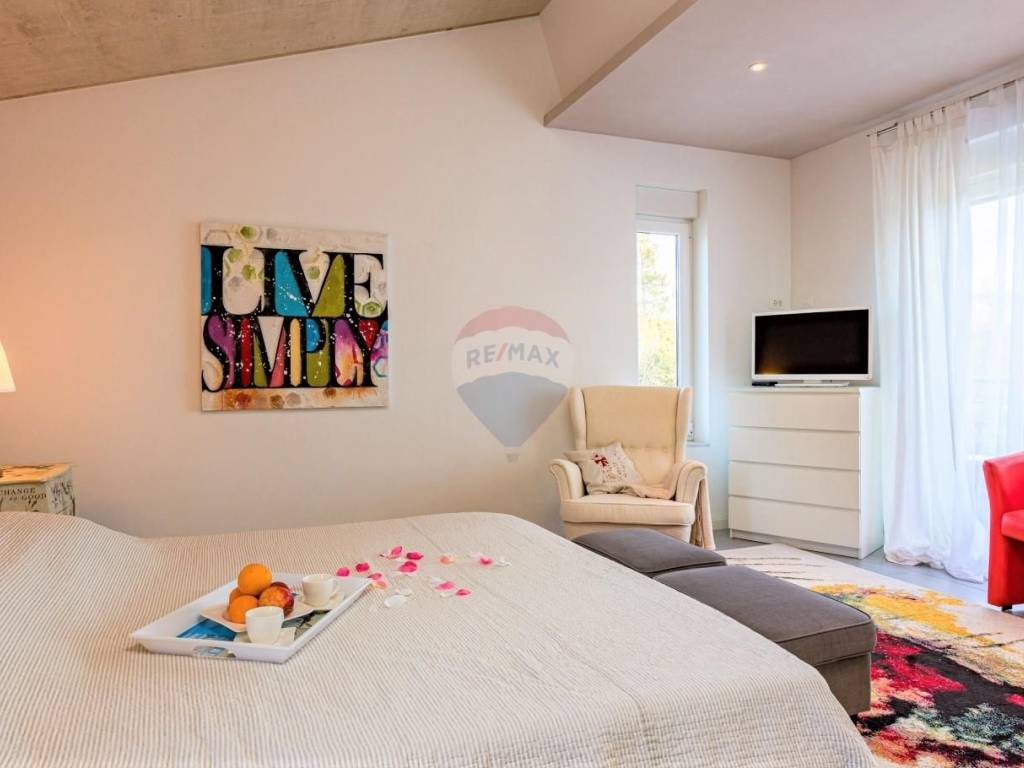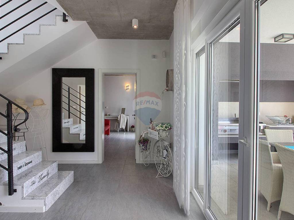 This luxurious modern villa imbued with stylistic balance is located on the east coast of Istria. It is located in the bay of Rakal and attracts attention with its design appearance, while the superior comfort and functionality of the villa confirm its quality. It was built on a plot of 1709 m2, while the net living area is 247 m2. The ground floor of the villa consists of a well-equipped, airy kitchen with a dining room, which unobtrusively merges with the comfortably furnished living room. Below, it is connected to the bedroom and dressing room, as well as the bathroom. Communication with the large pool and the environment is made possible by a covered porch and equipped terraces. On the first floor of the villa, there are three stylish bedrooms and two bathrooms, of which the master bedroom has a wardrobe and its own terrace with a view of the sea. The top floor of the villa is equipped with fitness equipment.