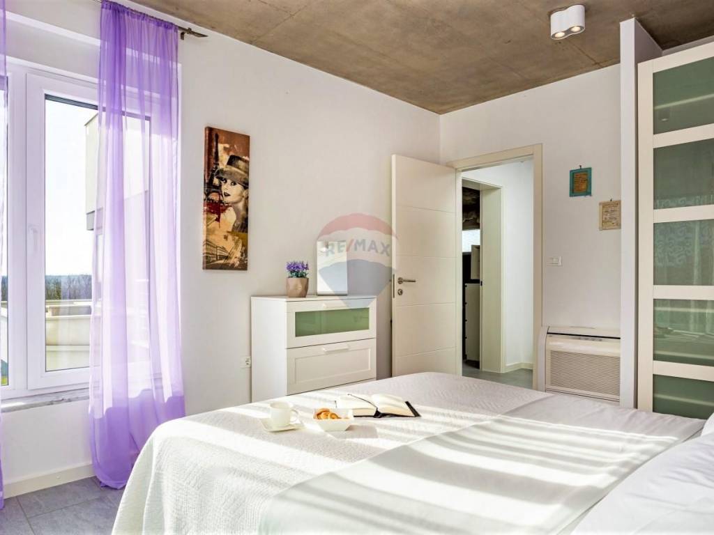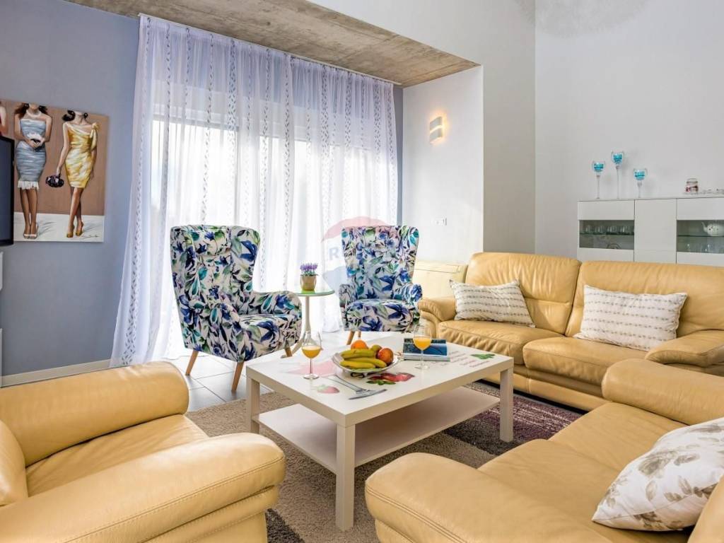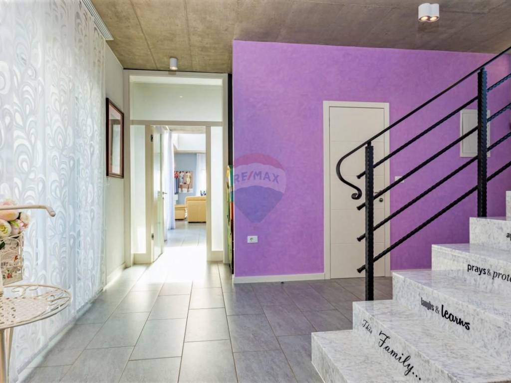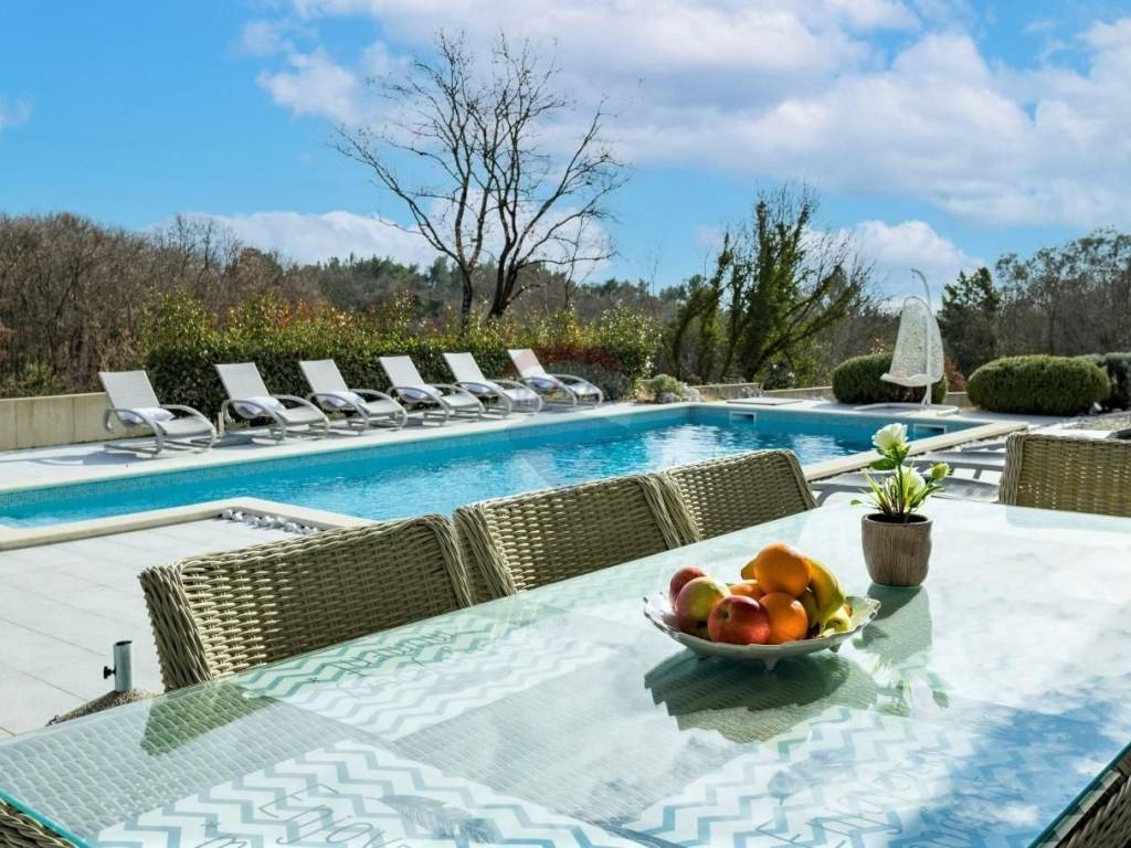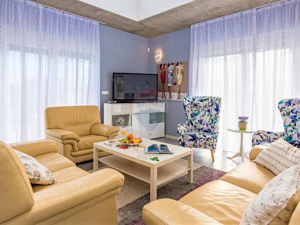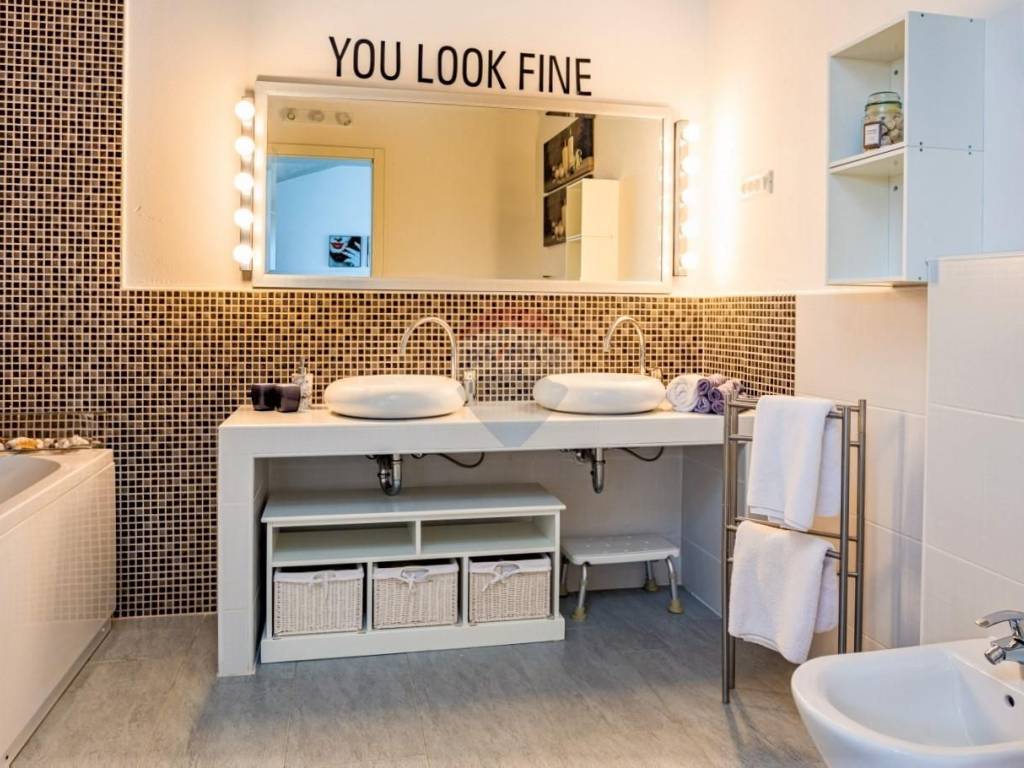 This luxurious modern villa imbued with stylistic balance is located on the east coast of Istria. It is located in the bay of Rakal and attracts attention with its design appearance, while the superior comfort and functionality of the villa confirm its quality. It was built on a plot of 1709 m2, while the net living area is 247 m2. The ground floor of the villa consists of a well-equipped, airy kitchen with a dining room, which unobtrusively merges with the comfortably furnished living room. Below, it is connected to the bedroom and dressing room, as well as the bathroom. Communication with the large pool and the environment is made possible by a covered porch and equipped terraces. On the first floor of the villa, there are three stylish bedrooms and two bathrooms, of which the master bedroom has a wardrobe and its own terrace with a view of the sea. The top floor of the villa is equipped with fitness equipment.