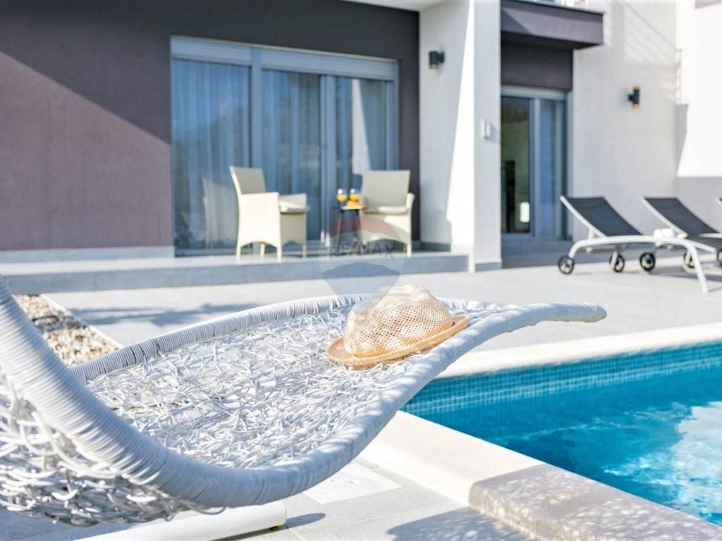 The spacious environment is dominated by a large swimming pool with an area of 44 m2, and the extraordinary aesthetic impression is supported by the surroundings of the swimming pool paved with white stone, and next to the villa there is also a summer kitchen with a barbecue.