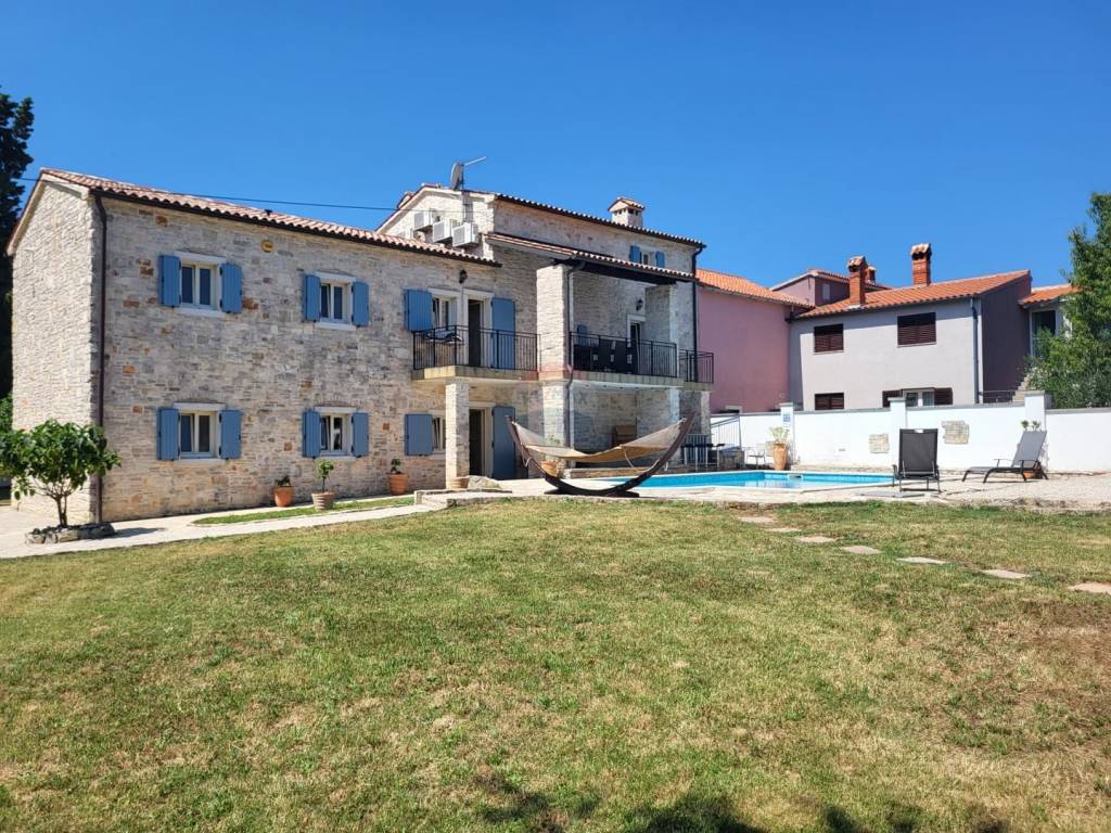 For sale is a beautiful originally Istrian stone house, completely renovated and remodeled a few years ago. The house is located in a small Istrian village, and it is located on the edge of the village on a larger plot of about 1900m2. So the back part, where the swimming pool, sunbathing area, barbecue, terrace and socializing area are located, is completely hidden and offers peace and privacy. The house has been extremely beautifully and qualitatively renovated, attention was paid to the details of which it is full. On the ground floor there is an entrance hall and 3 bedrooms with bathrooms. There is also an exit to the back of the yard and the pool. Stairs lead to the first floor, where there is a large living room with a functional wood-burning fireplace. There is also a large dining room and kitchen, pantry and bathroom. On the last floor there is a large master bedroom, with its own open space living room and bathroom. In the yard there is a large swimming pool, sunbathing area, garden house, barbecue and jacuzzi.