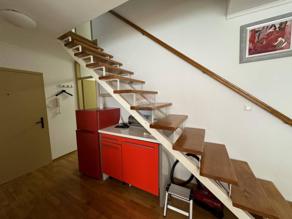 This three-room, two-story furnished apartment is located on the second floor of a building that has a total of 8 apartments. The apartment is spread over two floors, which allows for a well-organized space.