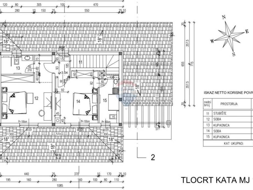 On the first floor we have two rooms with bathrooms. The first floor has 55.93m2.