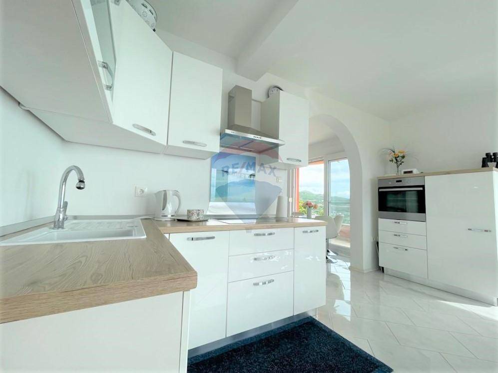 OPATIJA, DOBREĆ - Apartment 98.75 m2 with a view of the sea and a swimming pool. It is located in a newly built building with a total of 3 apartments (each apartment extends over the entire floor). The apartment in question is located on the 1st floor, 98.75 m2, and consists of: 2 bedrooms, living room with kitchen and dining room, 2 bathrooms, hallway, balcony and terrace. The balcony and terrace offer a wonderful panoramic view of the sea and the entire Kvarner Bay. The apartment is fully furnished and equipped and as such for sale. The apartment has 1 parking space and a plot of approx. 277 m2 with a garden and a swimming pool for the common use of all tenants. Quiet location, 5 minutes by car from the sea and the beach.