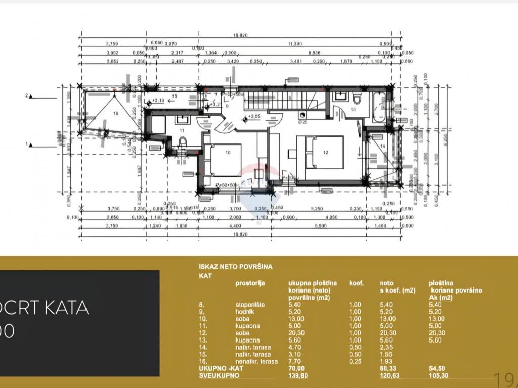 RE/MAX Centar Nekretnina is proud to present this stunning house in a truly unique location—perched on a peaceful hillside that offers natural privacy and an uninterrupted view of the open sea. This villa, currently under construction, is designed as a turnkey project with a total net area of 176 m² spread over two floors.