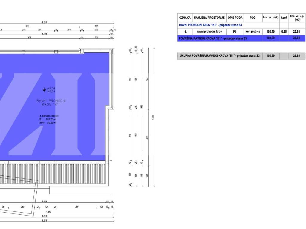 Pripada mu i prekrasna krovna terasa s jacuzzijem (101,23m2), koja nudi panoramski pogled na more.
