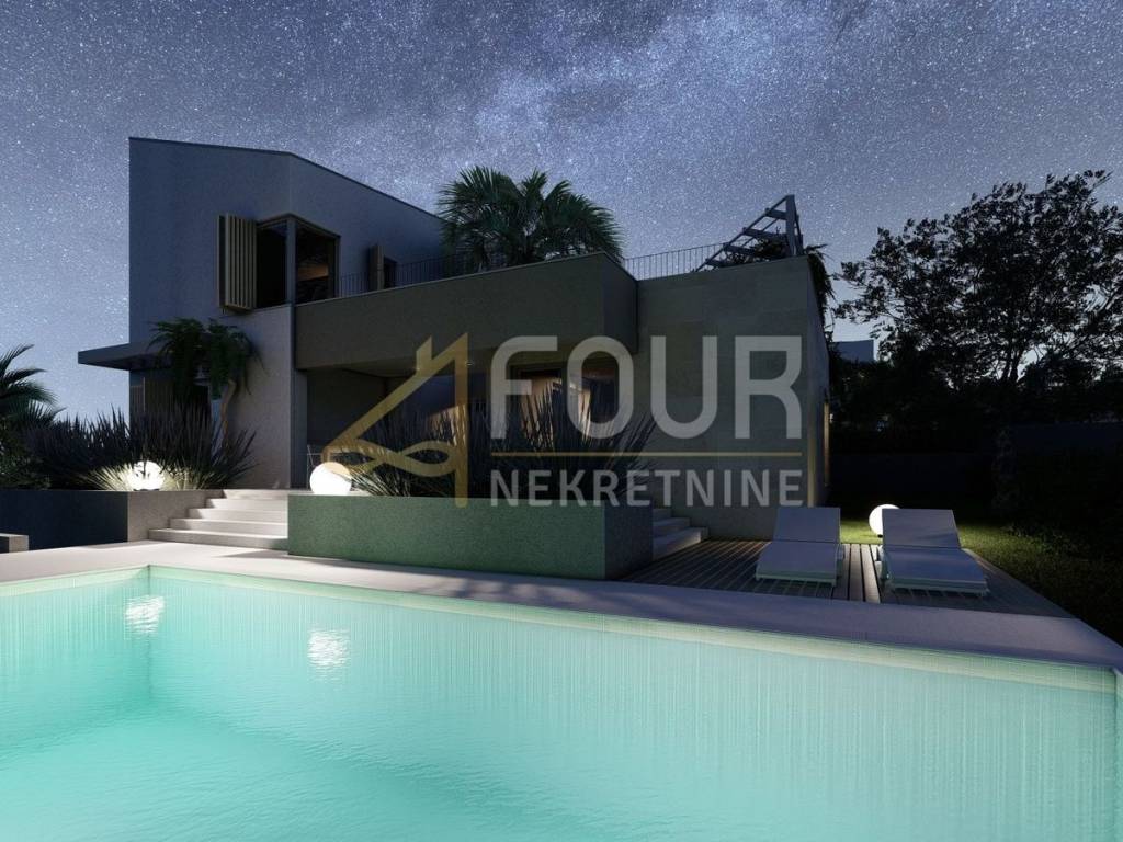 A modern standalone villa with a pool and sea views is for sale, located in a luxury resort on the island of Krk, just one kilometer from the coast. This elegant new build, scheduled for completion in 2026, offers a total of 206.17 m2 of living space spread out over a basement, ground floor, and first floor, with spacious terraces and landscaped surroundings that provide added value and a sense of privacy. In the basement level, there is a storage room, a modern gym space, a bathroom, and an additional toilet, making this part practical and ideal for wellness or hobby activities. The ground floor is designed as a bright and open living space that connects the kitchen, dining area, and living room, and on the same level there are two comfortable bedrooms, each with its own bathroom. The top floor features two more spacious bedrooms with private bathrooms and access to a large terrace with views of the sea and the greenery of the resort. The villa is equipped with Daikin air conditioning units, underfloor heating, and high-quality aluminum joinery, while in the courtyard there is a private heated pool measuring 32 m2. Within the resort, there are tennis, soccer, and basketball courts, as well as a playground, making this project a perfect combination of luxury, comfort, and recreation. Dear clients, agency fees are charged in accordance with the General Terms and Conditions.