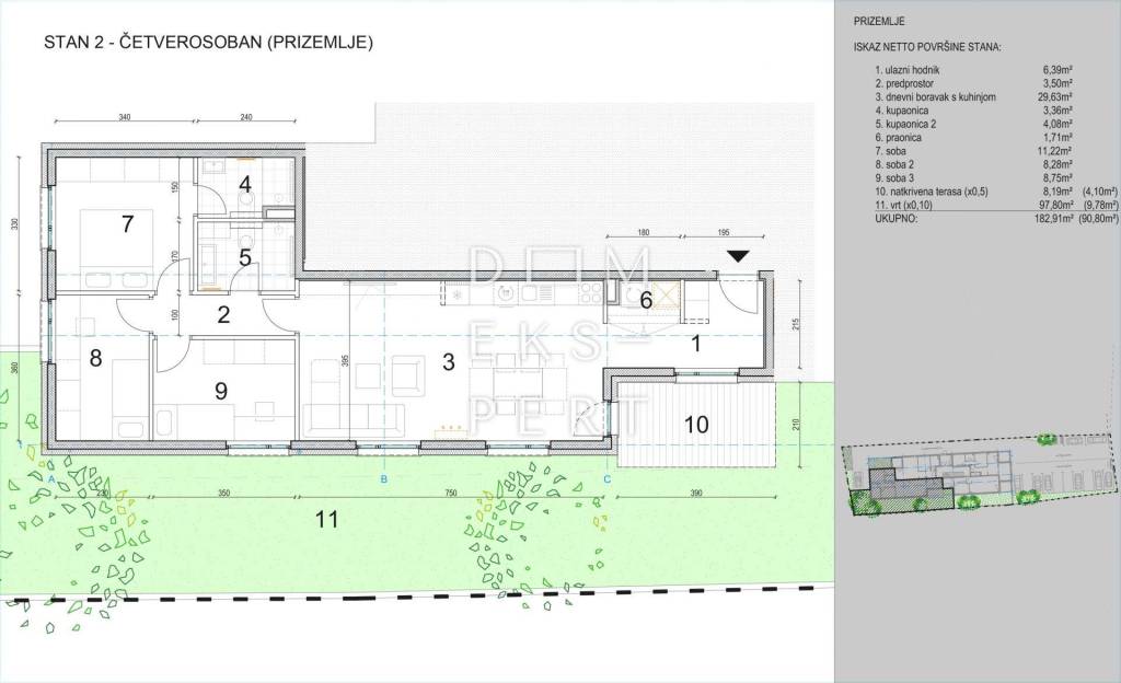 A newly built four-bedroom ground-floor apartment with a private garden is for sale in Čulinec, with a total area of 93.30 m².