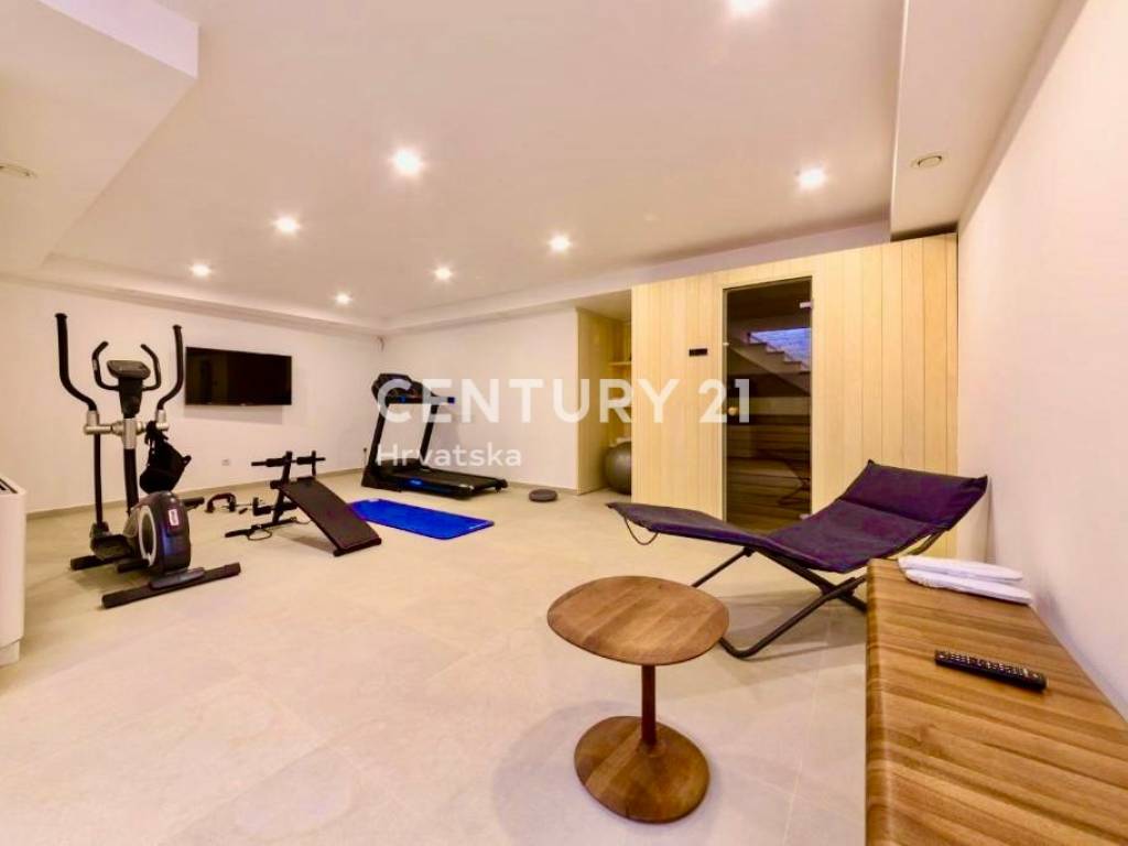 En el sótano hay un espacio para wellness, equipado con sauna, ducha y una zona de fitness completamente equipada, lo que convierte a la casa en un verdadero refugio para el descanso y la regeneración.