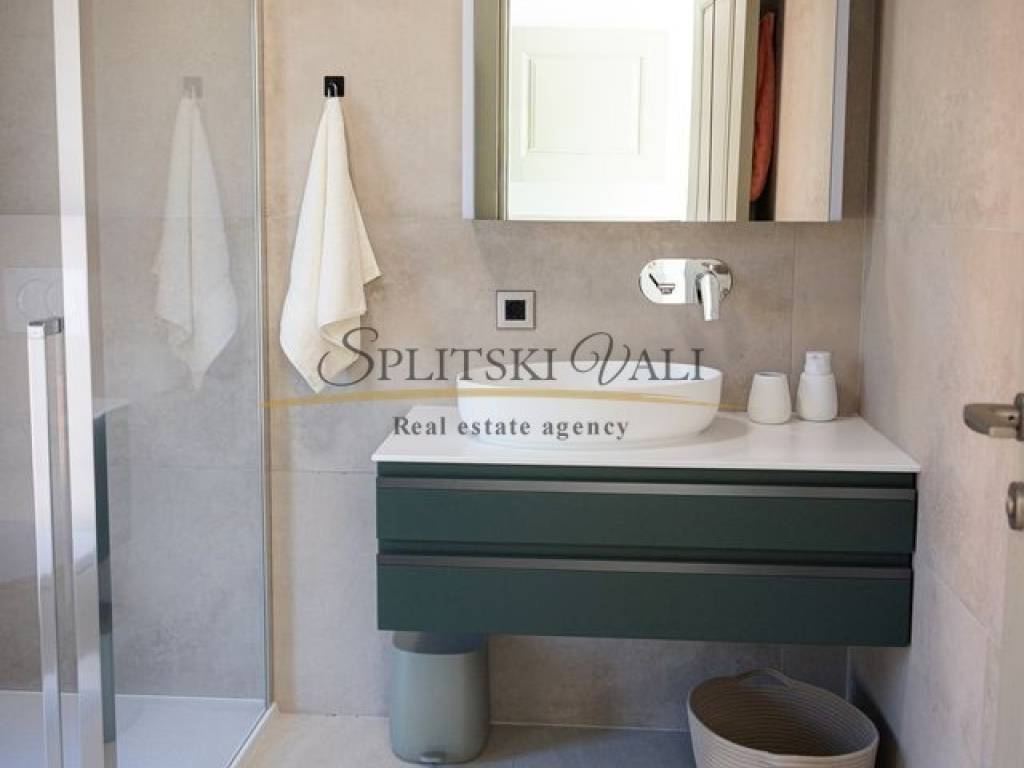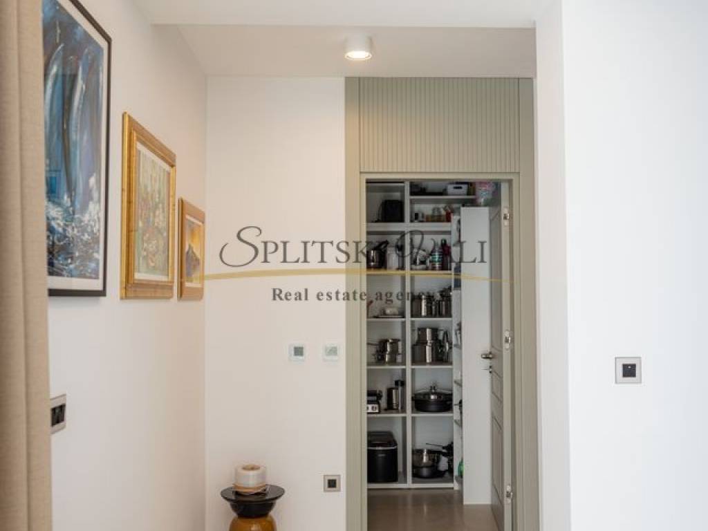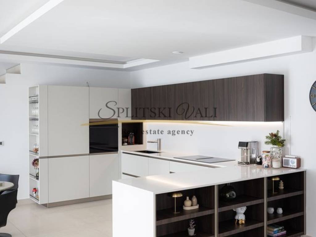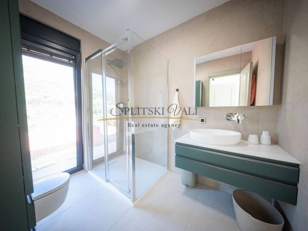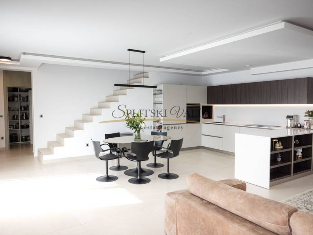 Posredujemo u prodaji iznimne vile od 260 m smještene u Kaštel Gomilici. Nekretnina se ističe modernim dizajnom i izuzetno funkcionalnim rasporedom. U prizemlju se nalazi prostran, sunčan dnevni boravak koji je povezan s kuhinjom i blagovaonicom u open-space izvedbi, stvarajući ugodan i elegantan prostor za svakodnevni boravak. Vila ima četiri udobne spavaće sobe, a svaka od njih opremljena je vlastitom kupaonicom, što pruža maksimalnu privatnost i komfor. Dodatno, tu su i gostinjski WC te laundry room. Jedan od najvećih aduta ove nekretnine je velika terasa s koje se pruža izniman panoramski pogled na more. Vila također ima i bazen okružen zelenilom, idealan za opuštanje tijekom toplih dana. Ovakva nekretnina idealna je za one koji traže mir, komfor i luksuz u neposrednoj blizini svih važnih sadržaja. Kupac plaća posredničku naknadu. Za više informacija molimo Vas nazovite na broj: 0915002178 Ana. Razgled nekretnine moguć je isključivo uz potpisani Ugovor o posredovanju, a što je u skladu sa Zakonom o zaštiti podataka i Zakonom o posredovanju i prometu nekretninama.