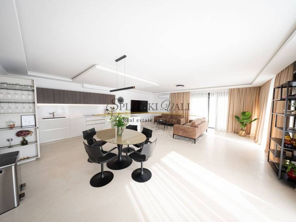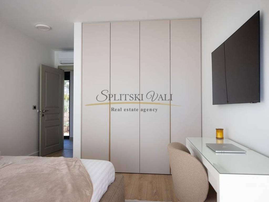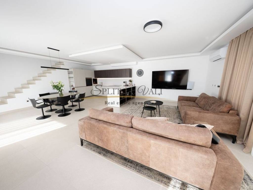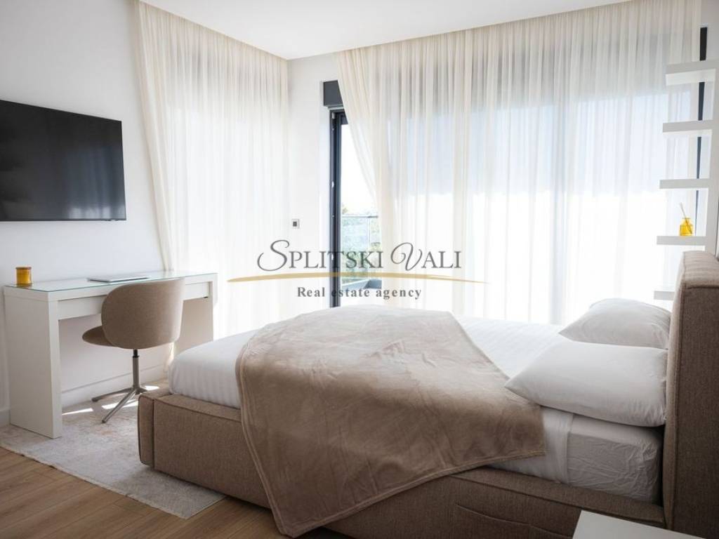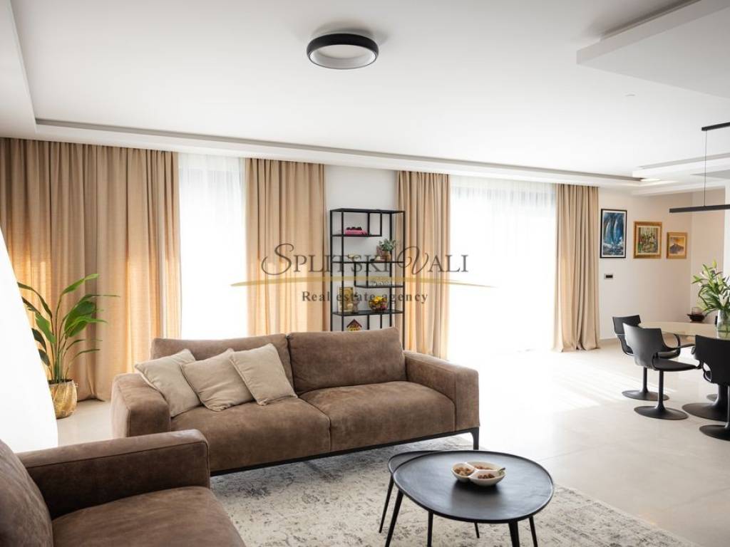 Posredujemo u prodaji iznimne vile od 260 m smještene u Kaštel Gomilici. Nekretnina se ističe modernim dizajnom i izuzetno funkcionalnim rasporedom. U prizemlju se nalazi prostran, sunčan dnevni boravak koji je povezan s kuhinjom i blagovaonicom u open-space izvedbi, stvarajući ugodan i elegantan prostor za svakodnevni boravak. Vila ima četiri udobne spavaće sobe, a svaka od njih opremljena je vlastitom kupaonicom, što pruža maksimalnu privatnost i komfor. Dodatno, tu su i gostinjski WC te laundry room. Jedan od najvećih aduta ove nekretnine je velika terasa s koje se pruža izniman panoramski pogled na more. Vila također ima i bazen okružen zelenilom, idealan za opuštanje tijekom toplih dana. Ovakva nekretnina idealna je za one koji traže mir, komfor i luksuz u neposrednoj blizini svih važnih sadržaja. Kupac plaća posredničku naknadu. Za više informacija molimo Vas nazovite na broj: 0915002178 Ana. Razgled nekretnine moguć je isključivo uz potpisani Ugovor o posredovanju, a što je u skladu sa Zakonom o zaštiti podataka i Zakonom o posredovanju i prometu nekretninama.