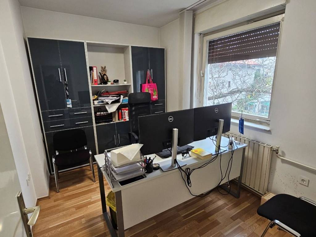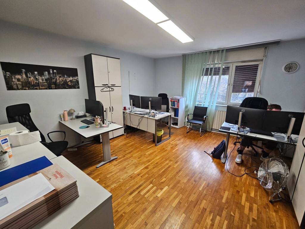 Iznajmljuje se svijetao ured 120m2 sa 5 prostorija i ulaznim halom (čekaonica/recepcija), 2 odvojena WC-a. lođom i čajnom kuhinjom.