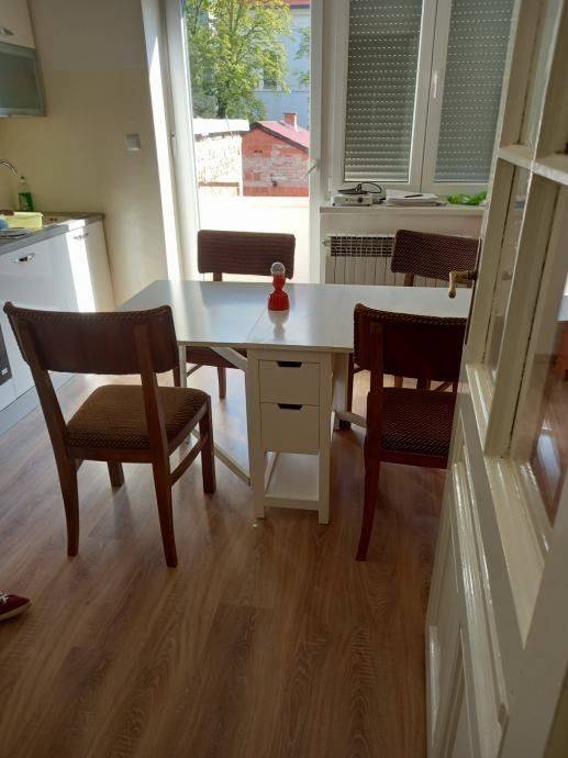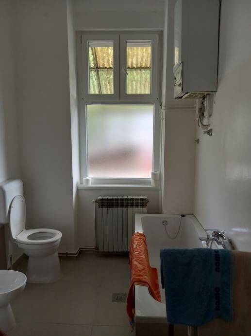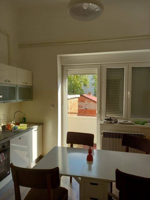 Stan visokog potencijala, renoviran, u centru grada, nalazi se na prvom katu stambene zgrade - kuće.jer su samo dva stana u zgradi.Zgrada ima zajedničko dvorište na južnoj strani.Stan ima 3 sobe na sjevernoj strani , dvije sobe su međusobno povezane.Jedna velika soba je na južnoj strani stana .Kupaona i kuhinja renovirane , također su južno orijentirane sa pogledom na Savu i Veliku crkvu.Kroz sredinu stana proteže se dugački hodnik.Cijela južna strana stana ima izlaz na logiu koja se proteže dužinom cijelog stana.