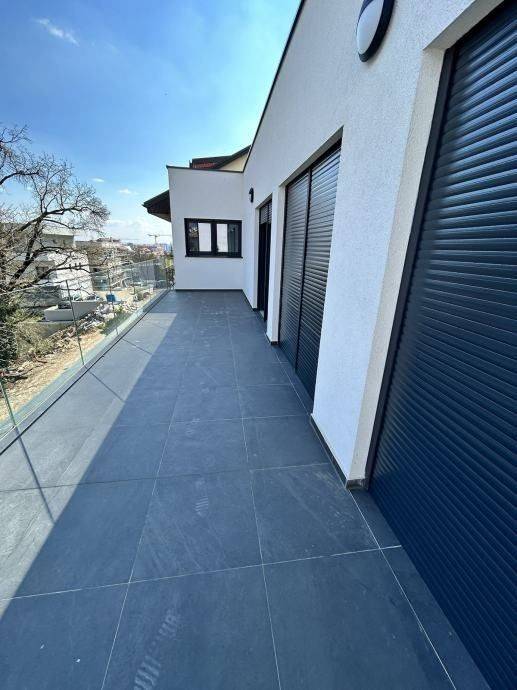Stan je izrazito svjetao, otvoren pogled iz stana sa istočne strane.Stan se sastoji od ulaza (predprostor) 3,44 m2, db+blagovaonica 42,34m2, kuhinje 9m2, tri sobe (soba 1-8,05m2, soba 2-11,25m2,soba 3-10,60m2),2 kupaonice (4,14m2 i 6,03 m2), 2 terase (sa istočne strane stana terasa 24,33 m2, druga terasa sa zapadne strane stana14,74m2), spremišta u prizemlju 6,44,m2 i garaže 15,12 m2, sveukupno stvarnih 155 m2, obračunski 118,52 m2.Parkirno mjesto uz stan koje nije u cijeni