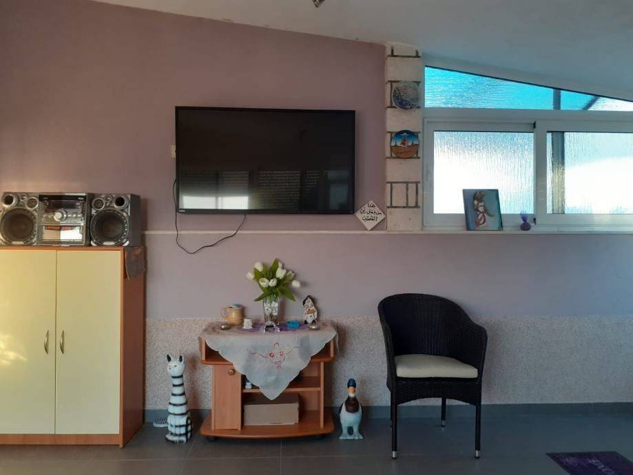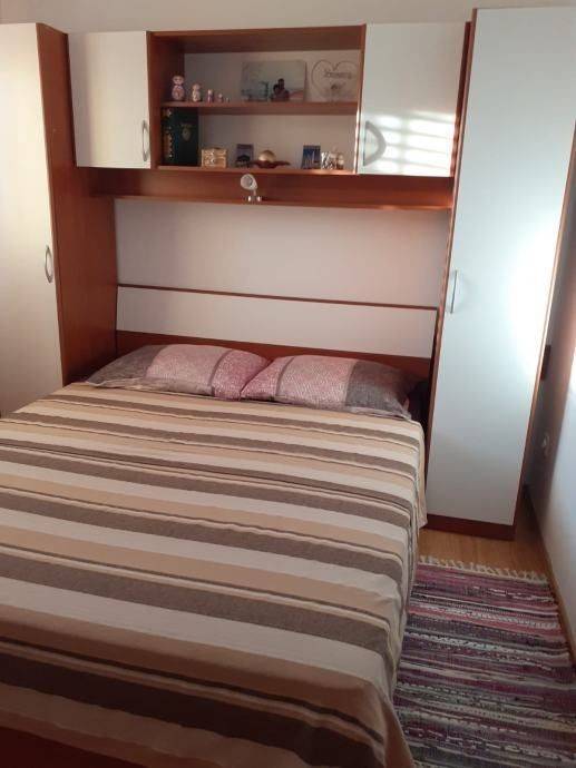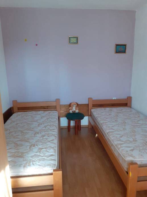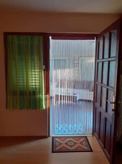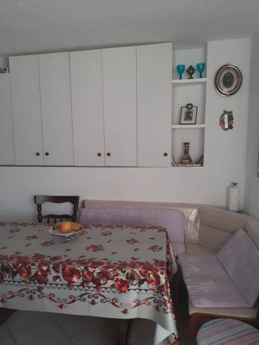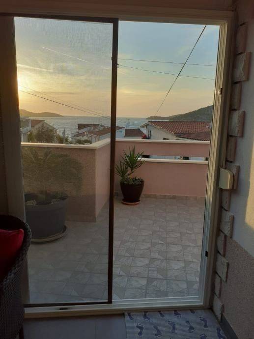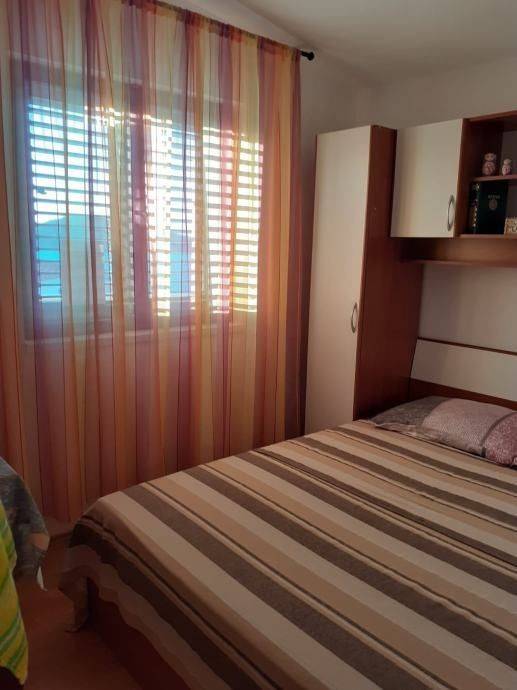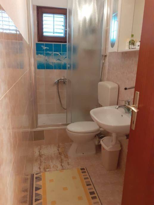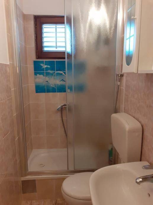 Prizemlje se sastoji od dvosobag stana koji ima hodnik koji ima potrebne instacije za postaviti kuhinju, kupaonu,dnevni boravak , jednu spavaću sobu, terasu opremljenu sa roštiljem s koje se pruža pogled na more. U neposrednoj blizini je plaža u mjestu na svega par minuta hoda. Sve potrebno udaljeno par min.hoda
