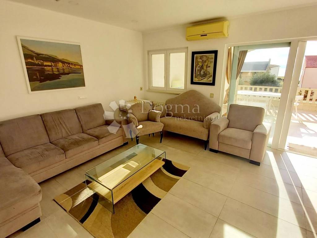 For sale is an exceptionally comfortable and bright two-bedroom apartment with a living area of 88.21 m, located on the elevated ground floor of a small residential building in a quiet part of Makarska. The property stands out for its excellent layout, abundance of natural light, and open sea view.