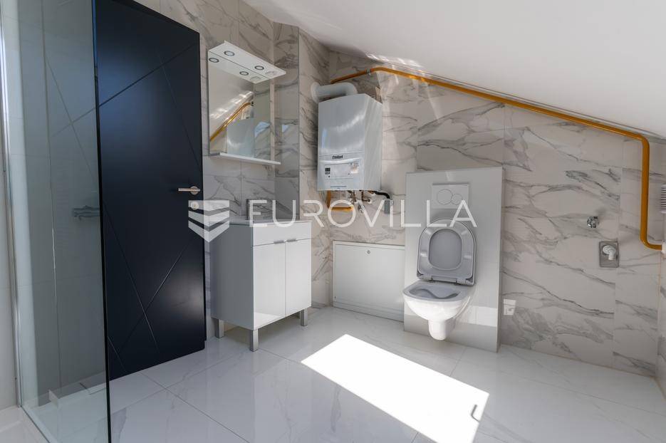 Požega, Centar, prodaje se trosoban stan u srcu Požege, smješten u modernoj novogradnji iz 2024. godine. Posebnost stana je što sadrži garažno parkirno mjesto, ostavu i dodatno naktriveno parkino mjesto.Stan se nalazi na drugom katu zgrade i sastoji se od ulaznog prostora (4,82 m2), kuhinje (9,32 m2) koja se savršeno nadovezuje na open space dnevni boravak i blagovaonicu (25,75 m2). Iz dnevnog boravka se izlazi na balkon (6,89 m2) s kojeg se pruža prekrasan pogled na Požegu. U stanu se nalaze i dvije spavaće sobe (9,16 m2 i 16,35 m2), prostrana kupaonica (7,11 m2) te praktičan hodnik (3,16 m2). Posebnost ovog stana je i velika loggia (10,19 m2), idealna za opuštanje i uživanje u svježem zraku. Stanu također pripada spremište (5,44 m2), garaža (29,70 m2) te natkriveno parkino mjesto(12,50 m2), što ga čini izuzetno funkcionalnim i praktičnim.Ova energetski učinkovita nekretnina ocjene A/A+ izgrađena je po najvišim standardima, osiguravajući niske režijske troškove i vlastiti solarnu elektranu. Lokacija u samom centru Požege pruža jednostavan pristup svim važnim sadržajima - trgovinama, restoranima, školama, vrtićima i javnom prijevozu.U slučaju dodatnih upita stojimo Vam na raspolaganju.