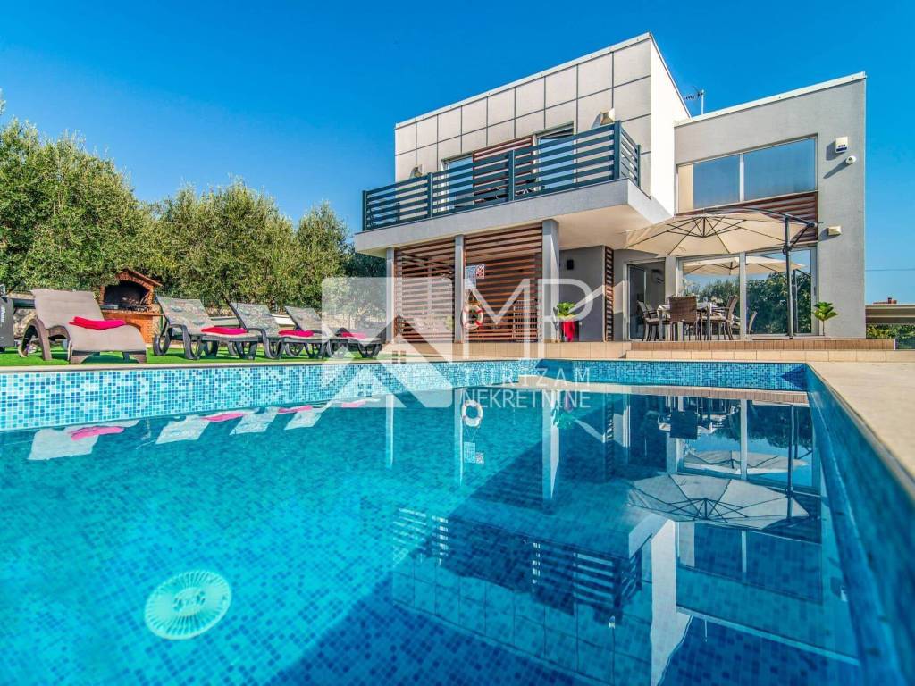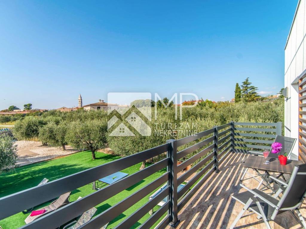 This impressive and modern villa is located in a quiet part of Vodnjan, just a 10-minute walk from the center, with a beautiful view of the sea and the Brijuni Islands.