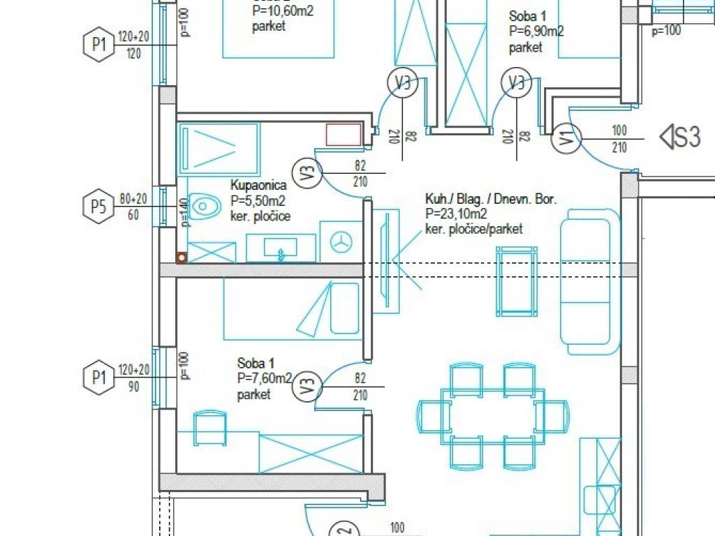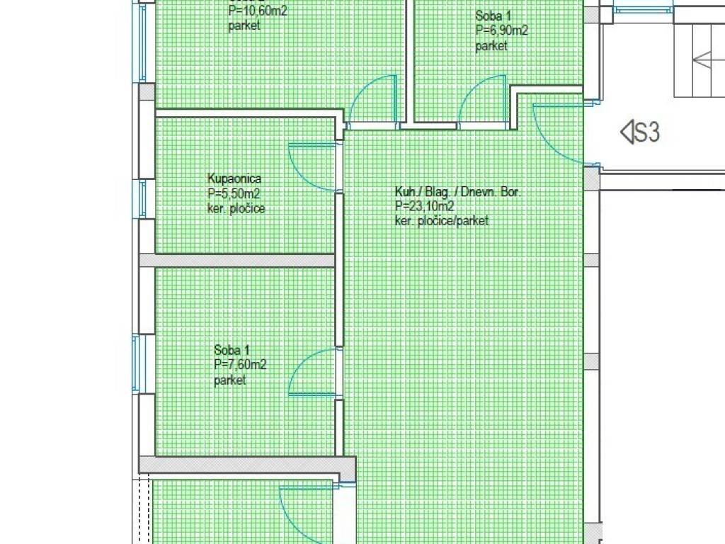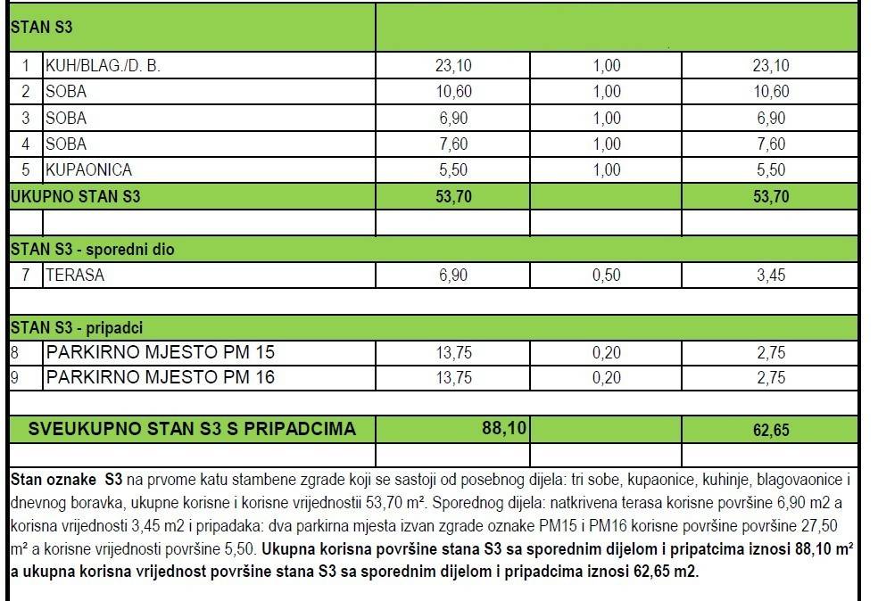 A three-bedroom apartment with a living room is offered, with a total calculated usable area of 62.65 m2, located on the first floor of a small residential building with a total of two floors, in an attractive location in Zadar, Plovanija neighborhood.