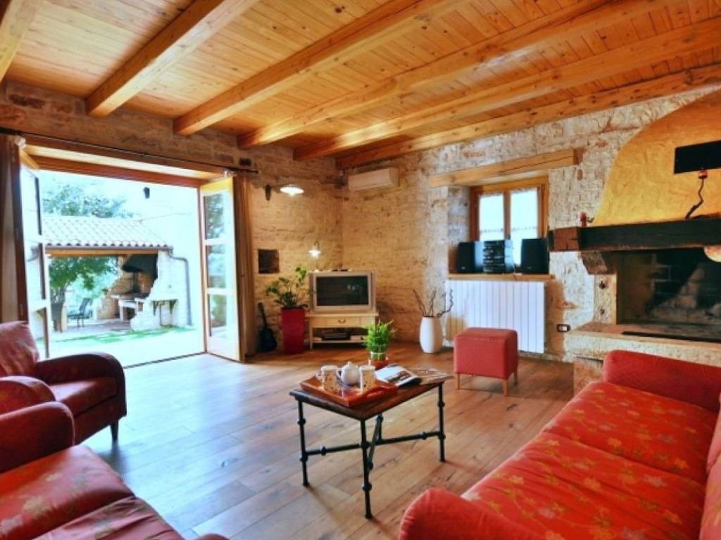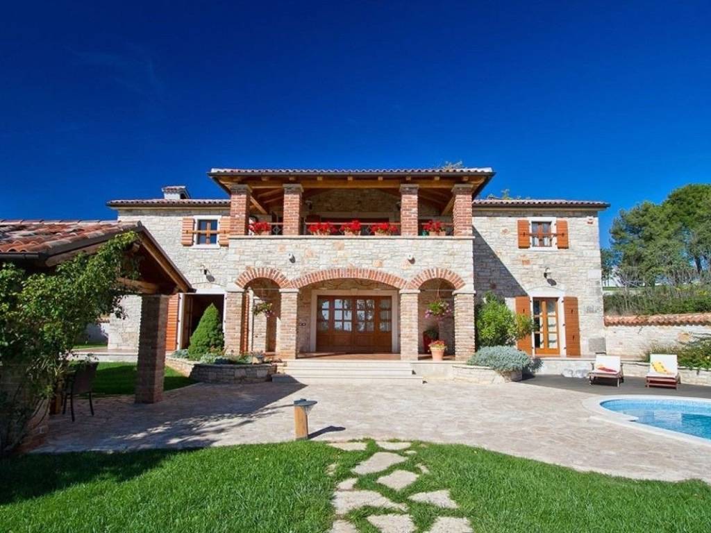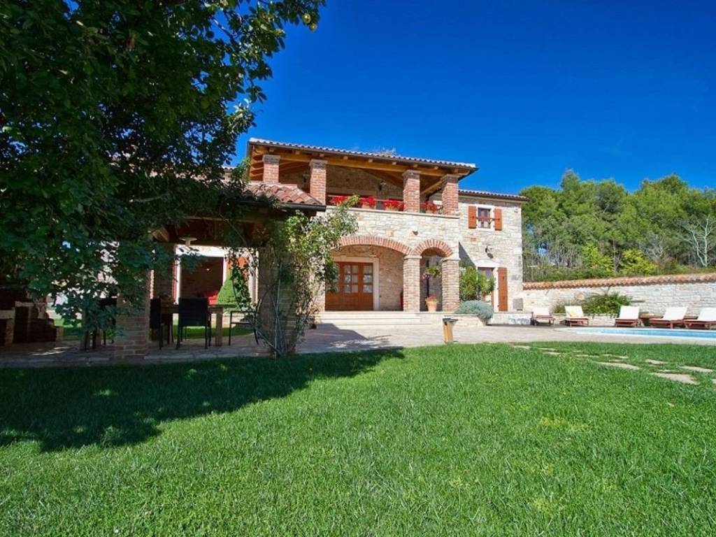 The villa is located 14 kilometers from Poreč and the sea, in a peaceful environment that allows privacy and a pleasant stay. It is a detached stone house with a total area of about 200 m², located on a landscaped plot of 1000 m². On the ground floor there is a living room with a fireplace, a kitchen, one bedroom with a private bathroom and an additional toilet. On the first floor there are three bedrooms, each equipped with a private bathroom, which ensures a high level of comfort for a large number of people. The house is air-conditioned and equipped with central heating on heating oil, so it is suitable for use throughout the year. In the yard there is a 37 m² swimming pool and a covered summer kitchen with a fireplace, which provides additional functionality in the warmer part of the year. The property comes fully furnished and equipped, ready to use without additional investment. Due to its layout, equipment and location, the villa is a suitable option for tourist rental or as a quiet family holiday home.