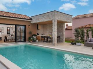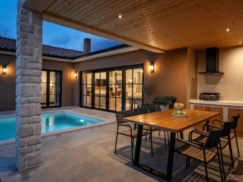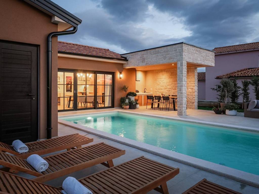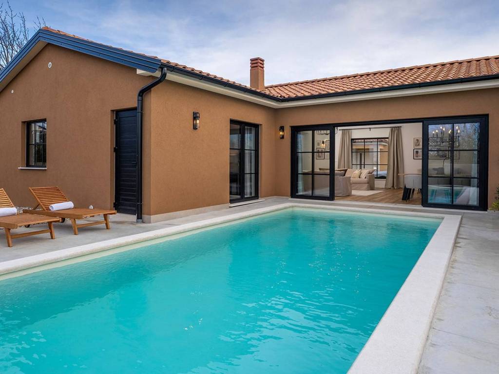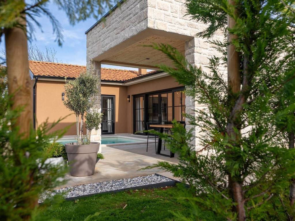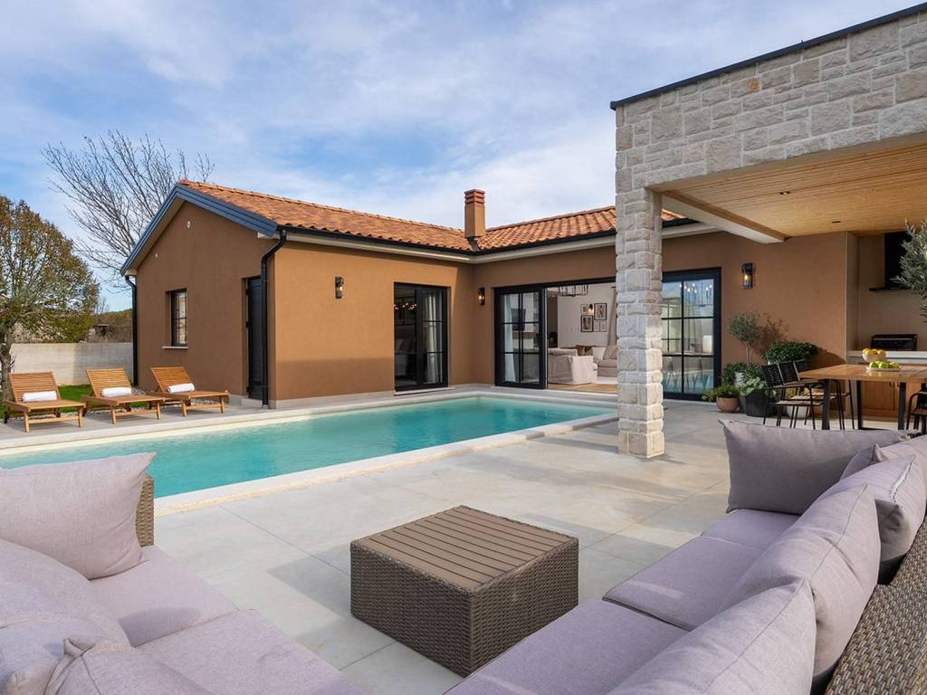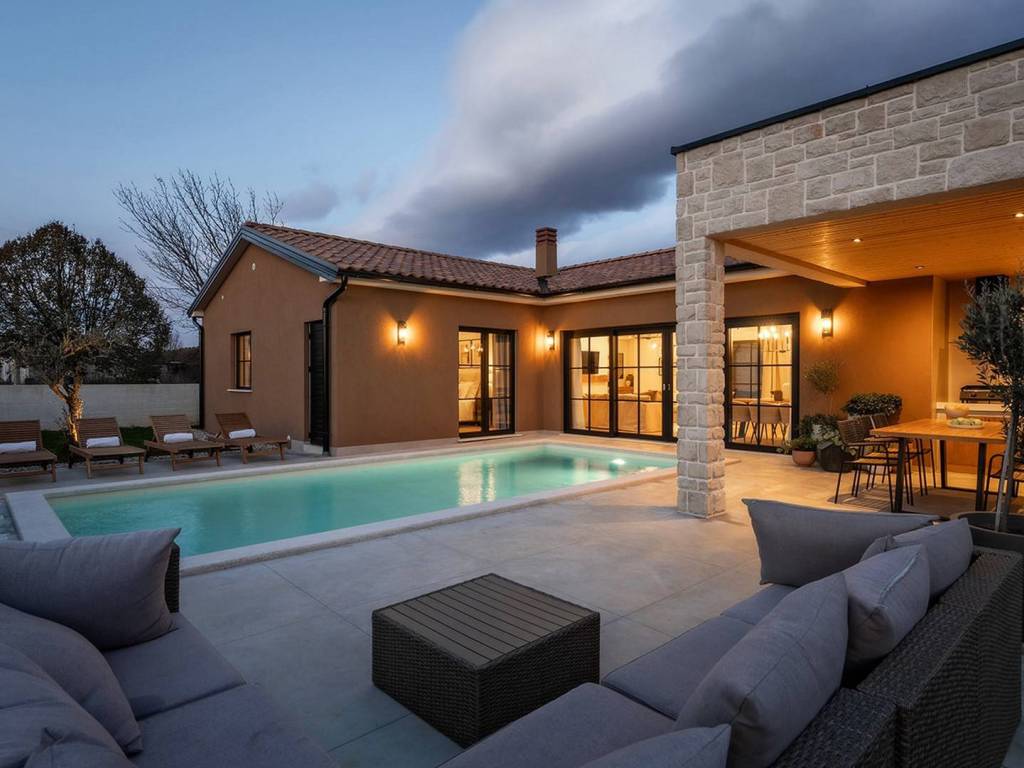 A charming single-storey house with a pool, designed as a blend of contemporary style and Istrian tradition.
