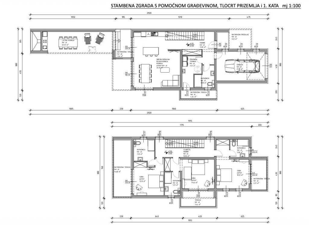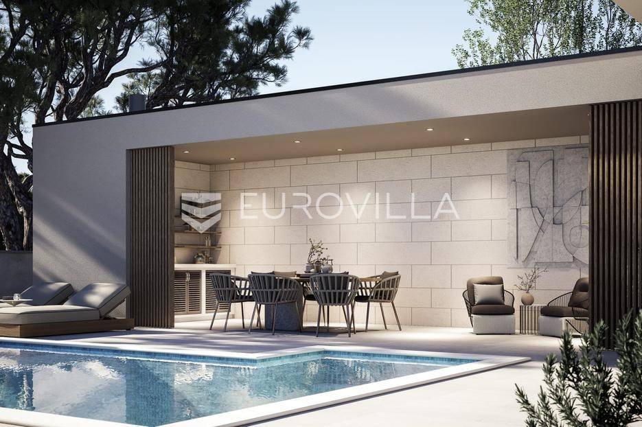 Rtina, Ražanac - građevinsko zemljište 436 m² s ishodovanom građevinskom dozvolom i projektom moderne vile s bazenomU Rtini Miletići, na mirnoj i uređenoj lokaciji u neposrednoj blizini mora, nalazi se građevinsko zemljište površine 436 m² s ishodovanom građevinskom dozvolom i kompletnim projektom moderne vile s bazenom. Parcela je pravilnog oblika, nalazi se unutar građevinskog područja naselja i ima pristup na postojeću prometnicu.Projekt obuhvaća izgradnju samostojeće vile katnosti prizemlje + kat, s pomoćnom građevinom (ljetna kuhinja) i vanjskim armiranobetonskim skimmerskim bazenom. Dokumentacija je izrađena u skladu s prostornim planom Općine Ražanac spremna za početak gradnje odmah.Projektirana villa ima približno 180 m² unutarnje površine. U prizemlju su predviđeni dnevni boravak s kuhinjom i blagovaonicom, spremište, tehničke prostorije, natkrivene terase i garaža. Na katu se nalaze tri prostrane spavaće sobe, svaka s vlastitom kupaonicom i izlazom na terasu s pogledom na more.Pomoćna zgrada - ljetna kuhinja - smještena je uz bazen i skladno nadopunjuje eksterijer.Planirani objekt projektiran je kao nZEB (zgrada gotovo nulte energije), s visokim standardima energetske učinkovitosti, optimalnom toplinskom zaštitom i sustavima koji osiguravaju minimalno 30 % energije iz obnovljivih izvora.Parcela omogućuje osiguranje parkirnih mjesta u skladu s prostornim uvjetima. Udaljenosti od međa, koeficijenti izgrađenosti i iskoristivosti te svi ostali parametri u potpunosti su usklađeni s važećim propisima.Lokacija je iznimno mirna i idealna za privatnu rezidenciju ili turistički objekt, s panoramskim pogledom na Velebitski kanal, more i otoke.U cijenu je uključena kompletna projektna dokumentacija: opis i grafički prikaz građevine, situacija, tlocrti, projekt vile s bazenom i pomoćnim objektom, ishodovana građevinska dozvola te elektroenergetska suglasnost.Po dogovoru je moguće organizirati i kompletnu izvedbu projekta do završetka, uključujući vođenje gradnje i usklađivanje svih faza radova, prema interesu kupca.Za sve dodatne informacije, tlocrte, vizualizacije ili organizaciju obilaska stojimo na raspolaganju.