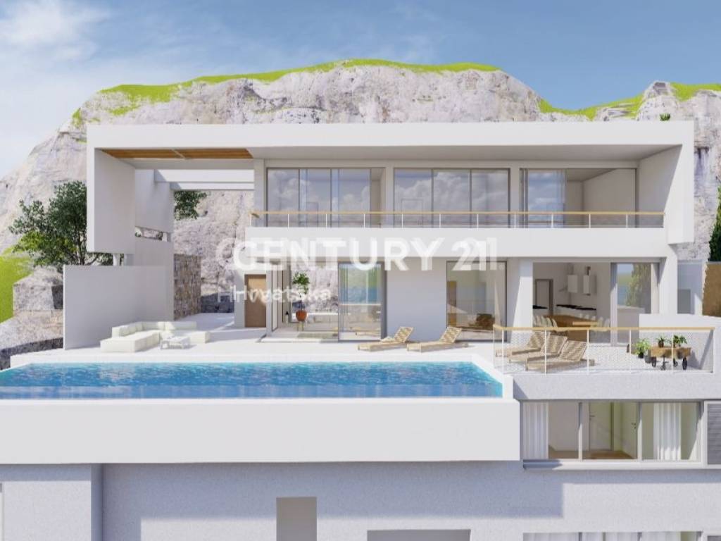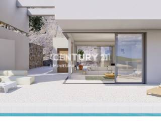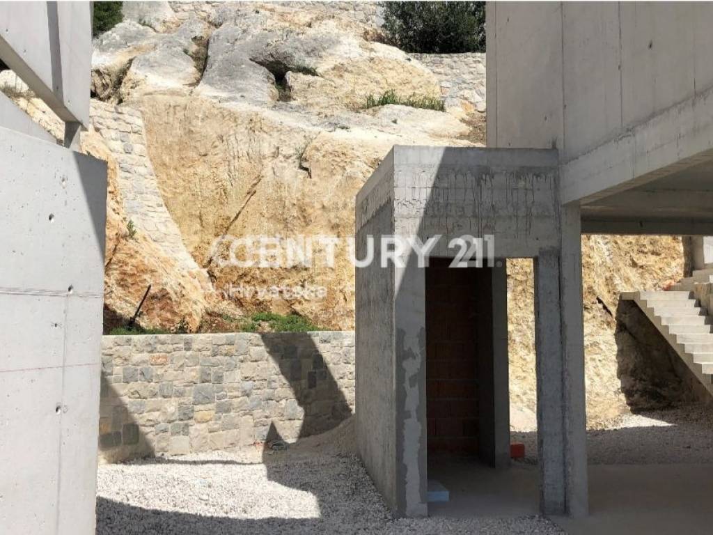 Izgrađena kuća, preljevni bazen i vrtne terase prilagođene su stijenama na prirodnoj padini,čime je suvremena arhitektonska intervencija u prostoru inkorporirana u prirodni ambient okoliša.Pri gradnji armirano betonske kontrukcije objekta kao i vrtnih zidova, korišten je cement, čelik ikamen u skladu sa izvedbenim projektom te s najvišim standardima gradnje. Jednako tako posvećenaje pažnja hidroizolaciji i drenaži objekta i vrtova. Aktualno je završen konstruktivni dio kuće,preljevnog bazena (armirano-betonski) te vrtnih terasa s armirano-betonskim zidovima obloženihobrađenim kamenom iz iskopa.