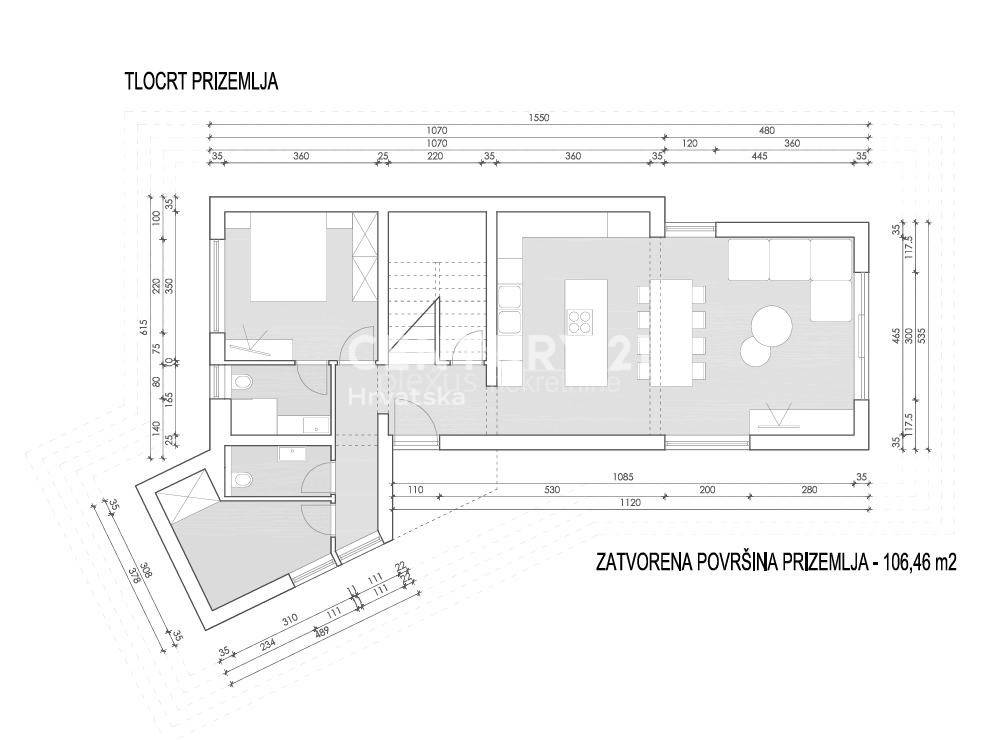 Zemljište (koje se sastoji od četiri spojene katastarske čestice) ima izdužen (tlocrtno poput noža) oblik, što nosi određena ograničenja u pogledu planiranja i izgradnje, no unatoč tome, uz postojeći idejni projekt za kuću površine 170 m2, parcela se može funkcionalno iskoristiti uz pažljivo planiranje.