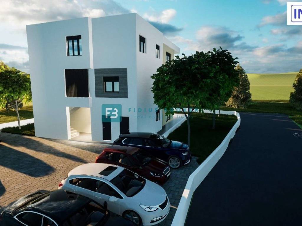 Construction of a small residential building with a total of 3 residential units is underway. The modern-looking building consists of three floors: ground floor + 1st floor + 2nd floor. The building is being built with quality materials and will be equipped according to the latest construction standards: polystyrene facade, security entrance door, quality interior joinery with hidden hinges, roll-up exterior joinery in anthracite color, electric roller shutters, glass railings on the terraces, quality flooring, modern bathroom fixtures, air conditioning in all rooms, telephone and Internet connections, underfloor heating in the bathrooms and living room and a video intercom.