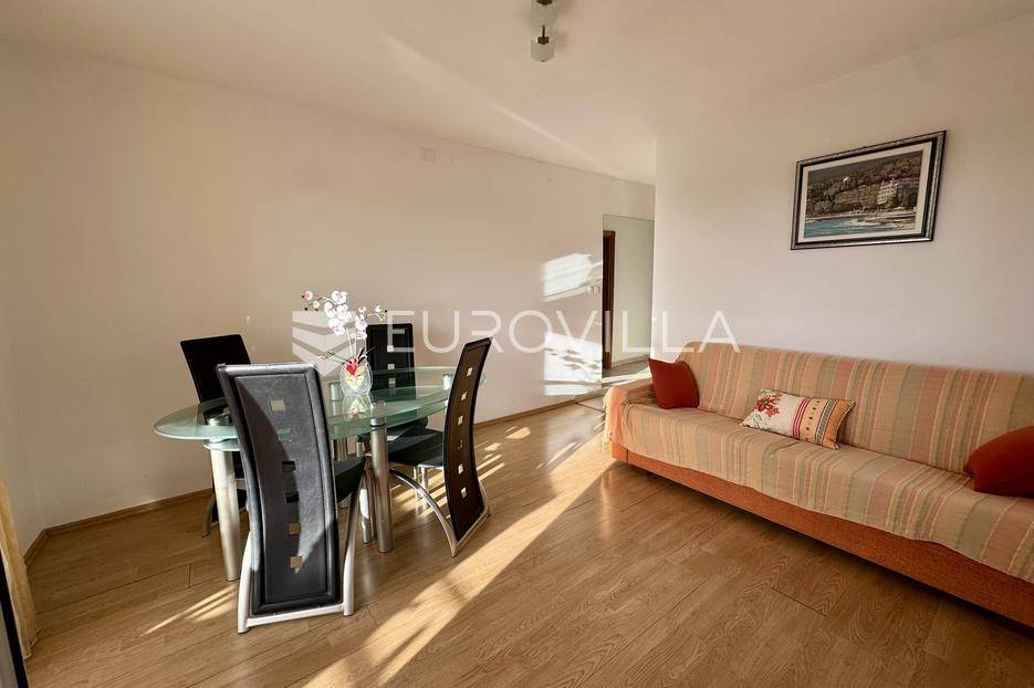 Jadranovo, odličan stan NKP 47 m² smješten na prvom katu zgrade, s dva balkona, svega 380 metara od mora. Nalazi se u urednoj i održavanoj zgradi te ima pripadajuće parkirno mjesto i spremište u suterenu. Do plaže je svega 5 minuta lagane šetnje.Stan se sastoji od svijetlog dnevnog boravka s izlazom na prostran balkon koji nudi prekrasan, otvoreni pogled. Kuhinja je trenutno smještena u prostoriji koja je po originalnom projektu bila predviđena kao dječja soba; vlasnici su je prenamijenili kako bi dobili veći i funkcionalniji dnevni boravak, no prostor se vrlo jednostavno može vratiti u prvotnu namjenu.Tlocrt uključuje i urednu kupaonicu, prostranu spavaću sobu s vlastitim izlazom na balkon te hodnik. Stan je dobro održavan, klimatiziran i u potpunosti opremljen, što omogućava trenutačno korištenje bez dodatnih ulaganja.Lokacija je iznimno mirna, idealna za one koji žele privatnost i blizinu mora, a istovremeno brz pristup svim sadržajima.Za sve dodatne informacije slobodno nas kontaktirajte!