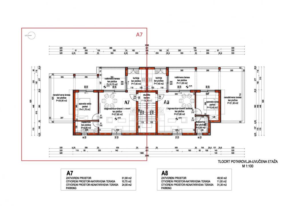 For sale is a modern one-bedroom penthouse apartment A7 on the 3rd floor of a new residential building, with a total usable area of 65.88 m2. The apartment is located in a quiet and attractive place Dolac near Primošten, in a quality new building with a total of 8 apartments on a beautiful elevated location that offers an extraordinary view of the sea and unforgettable sunsets.